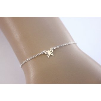 Bracelet de style minimaliste en argent massif avec petit papillon en argent. Longueur réglable. Plusieurs longueurs disponibles.