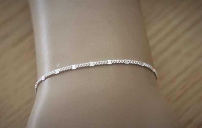 Bracelet de style minimaliste en argent massif, réalisé avec une jolie chaine gourmette agrémentée de petits carrés plats . Longueur réglable. Plusieurs longueurs disponibles.