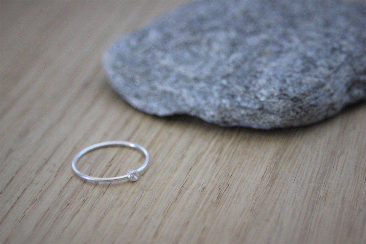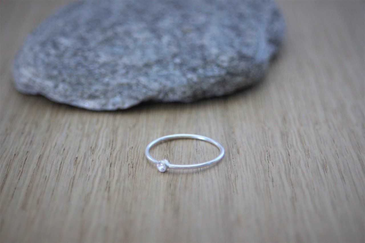 Bague en argent massif avec zircon - bague solitaire - bague minimaliste - bague diamant