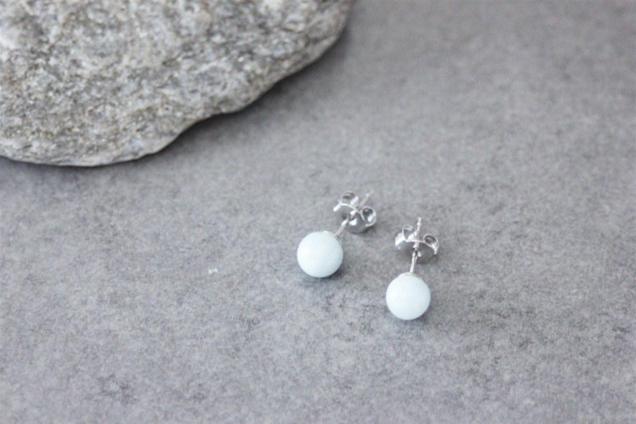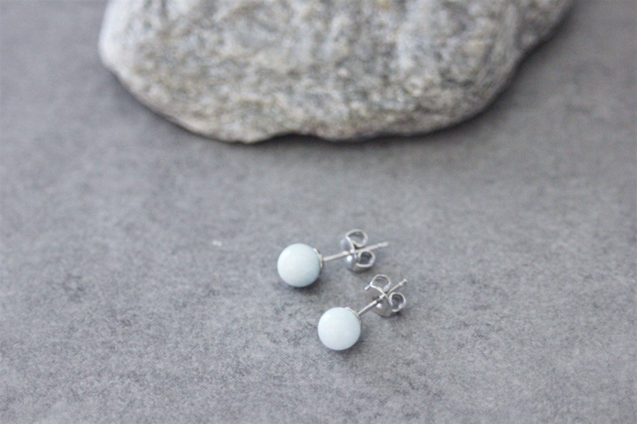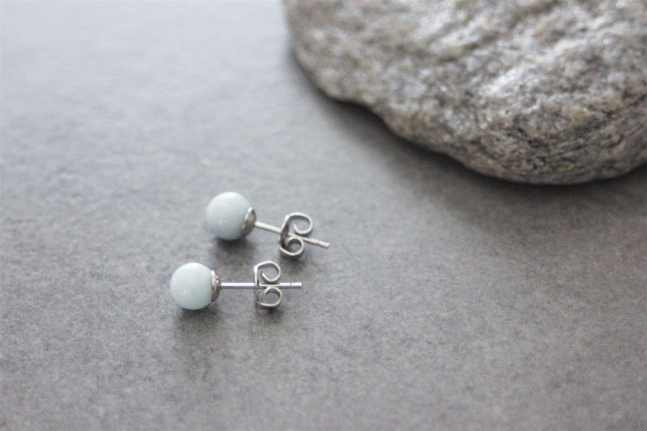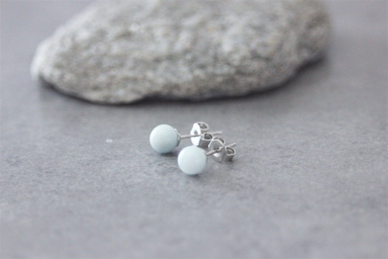 Boucles d'oreilles en aigue marine et argent massif Ø6mm - Puces d'oreilles pierres naturelles - Clous d'oreilles pierres gemmes