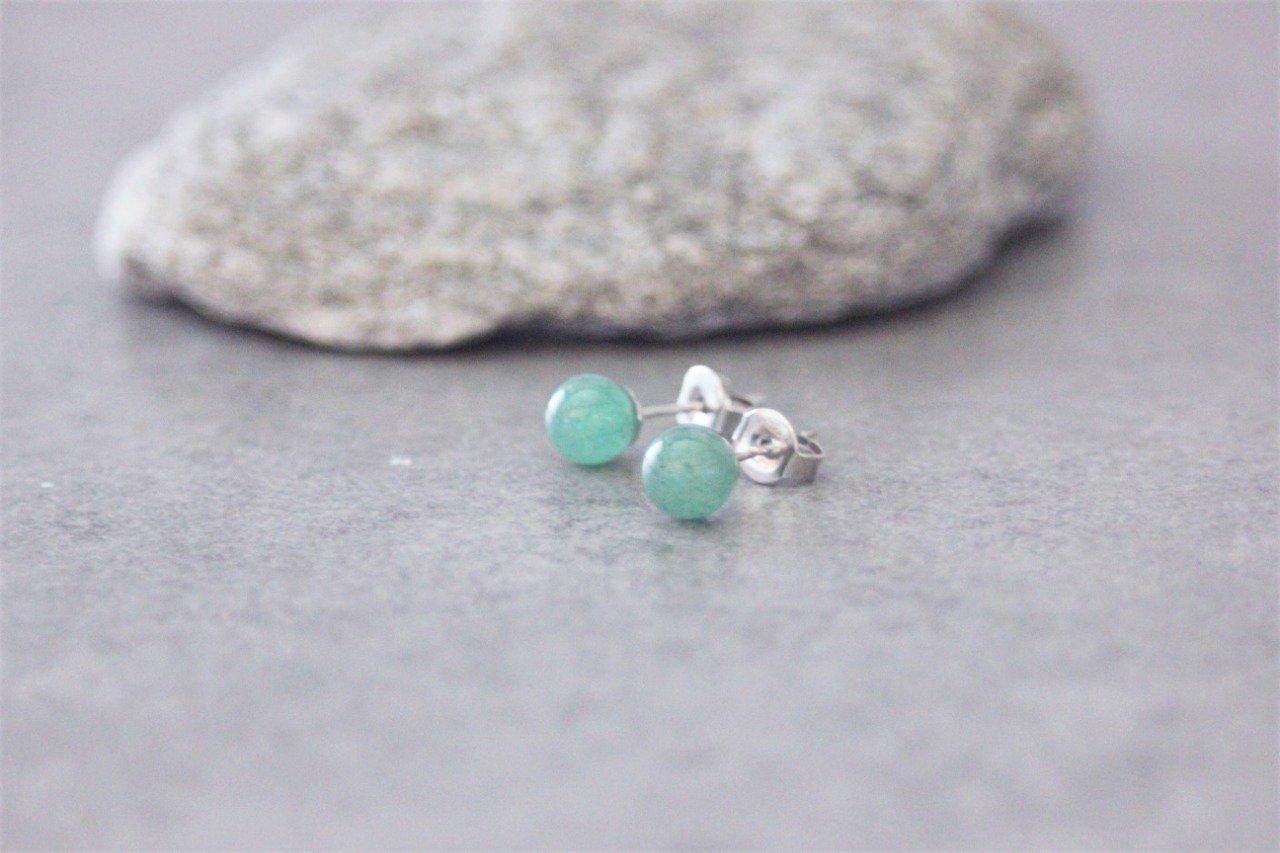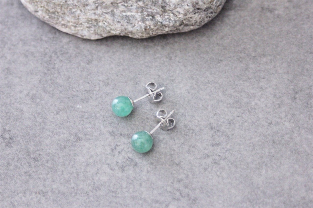 Boucles d'oreilles en aventurine émeraude et argent massif Ø6mm - Puces d'oreilles pierres naturelles - Clous d'oreilles pierres gemmes
