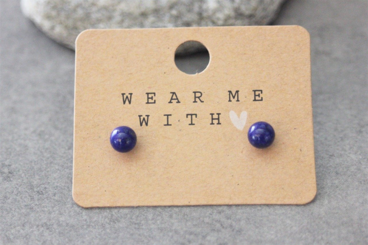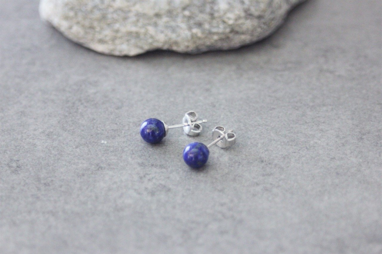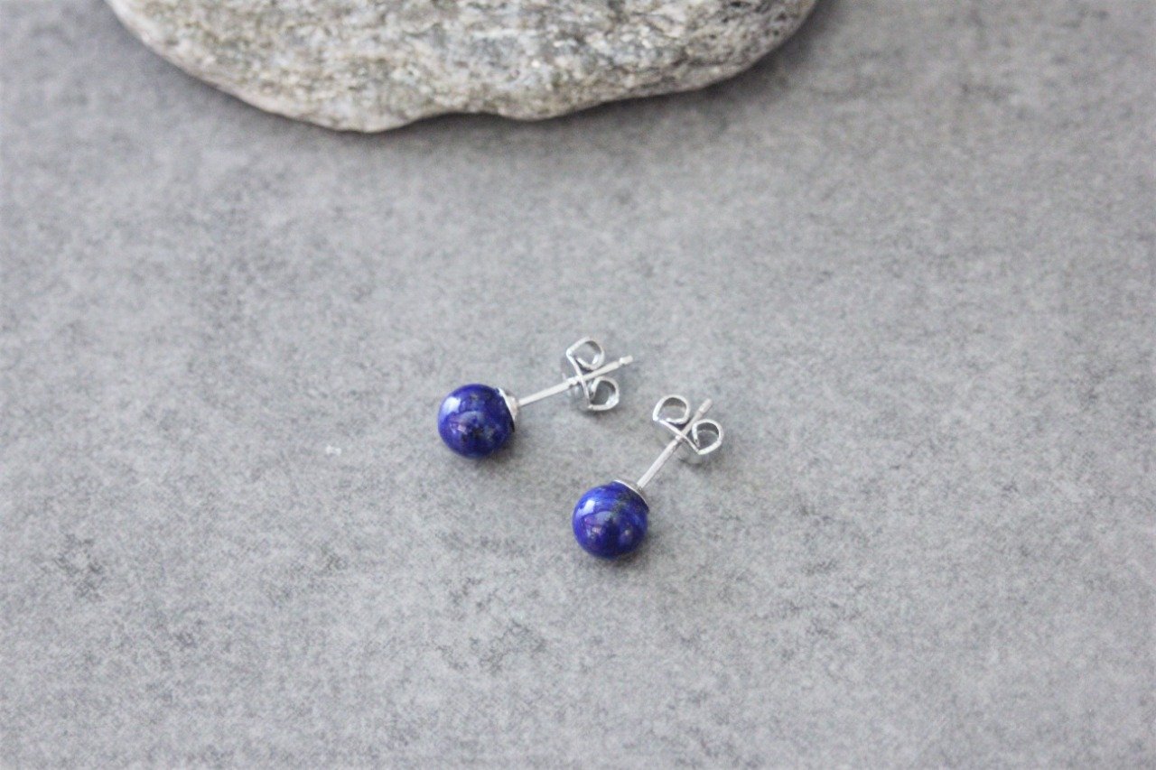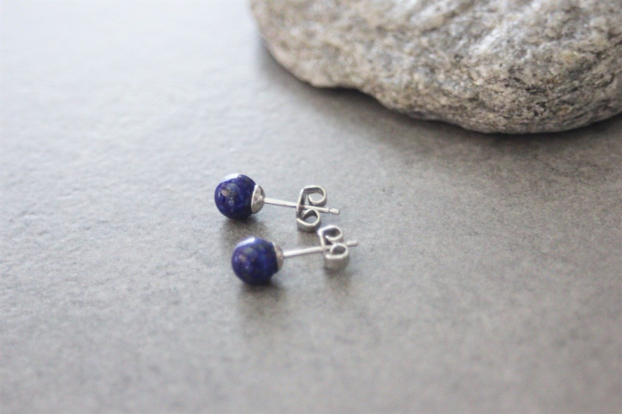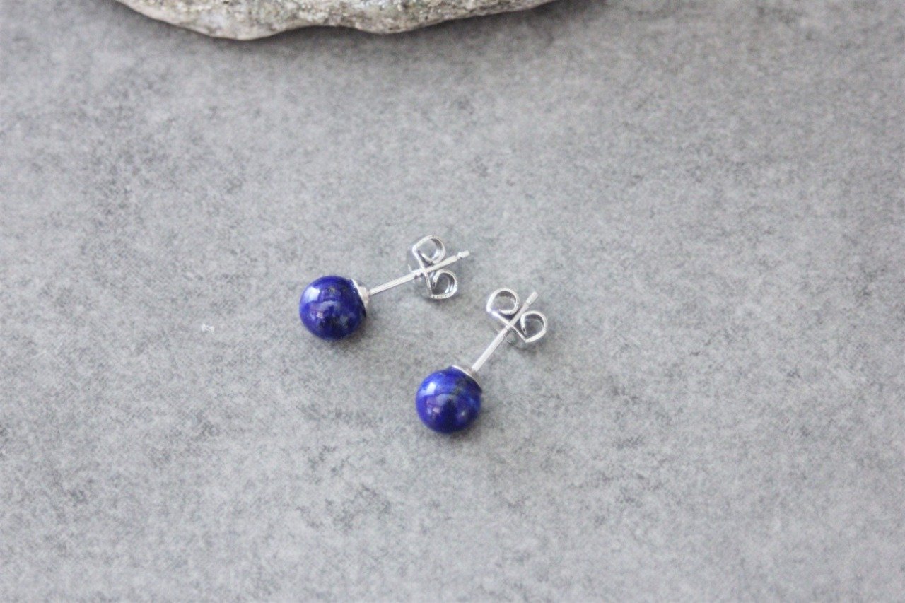 Boucles d'oreilles en lapis lazuli et argent massif Ø6mm - Puces d'oreilles pierres naturelles - Clous d'oreilles pierres gemmes