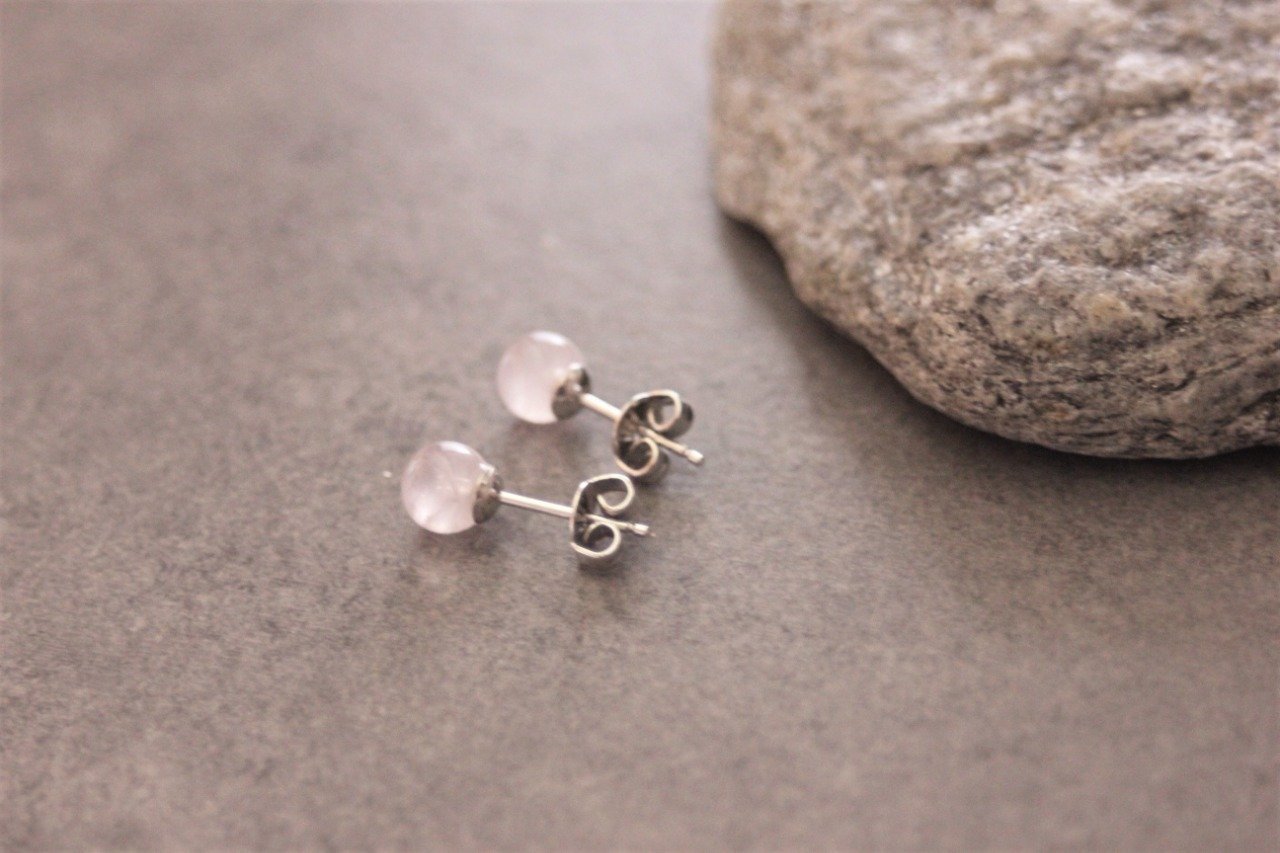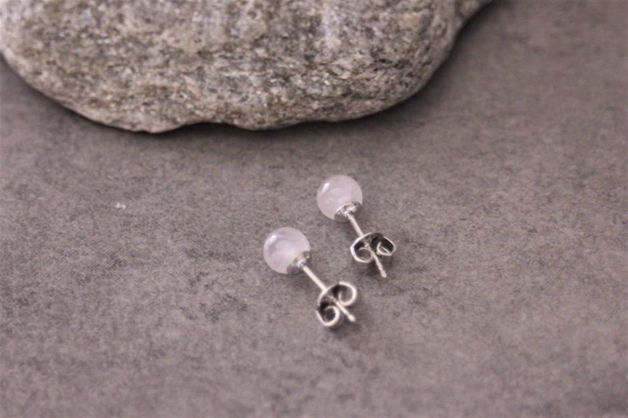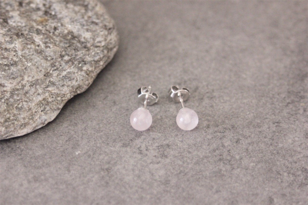 Boucles d'oreilles en quartz rose et argent massif Ø6mm - Puces d'oreilles pierres naturelles - Clous d'oreilles pierres gemmes