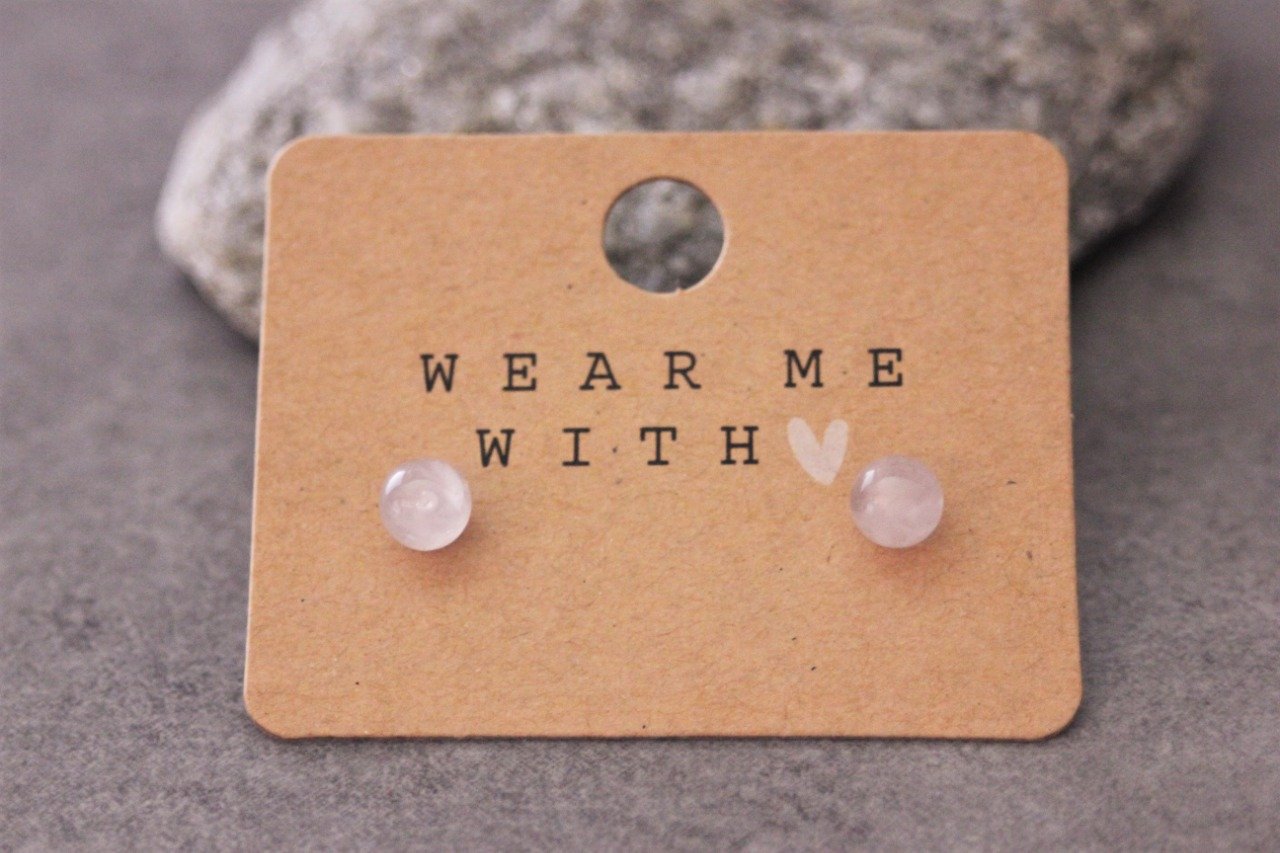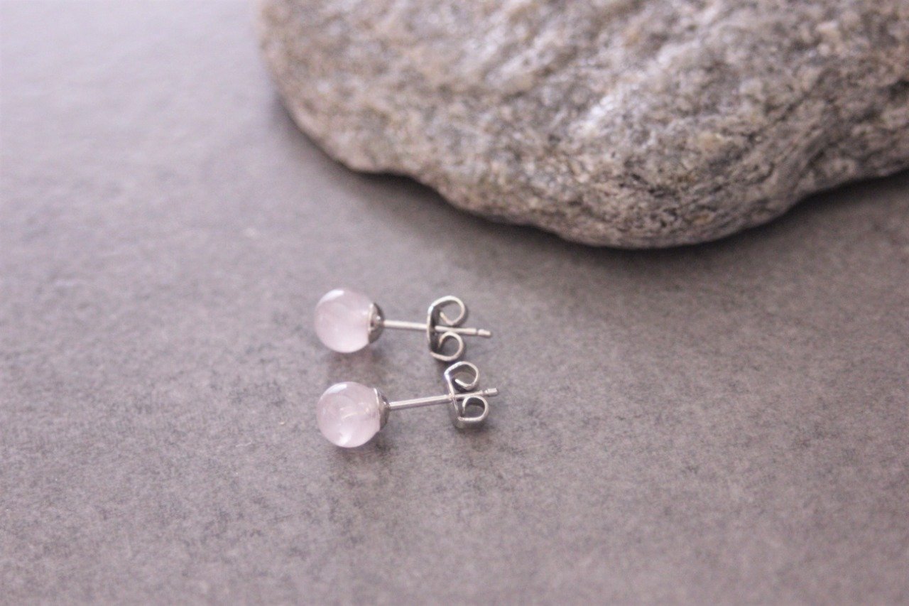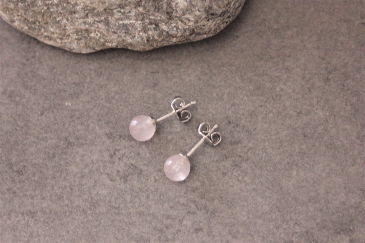 Boucles d'oreilles en quartz rose et argent massif Ø6mm - Puces d'oreilles pierres naturelles - Clous d'oreilles pierres gemmes