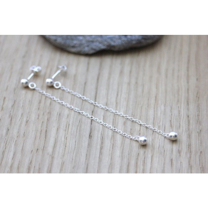 Elles se composent d'un clou avec une perle en argent de 4mm, sur lequel est accrochée une chainette avec une boule en argent de 4mm.