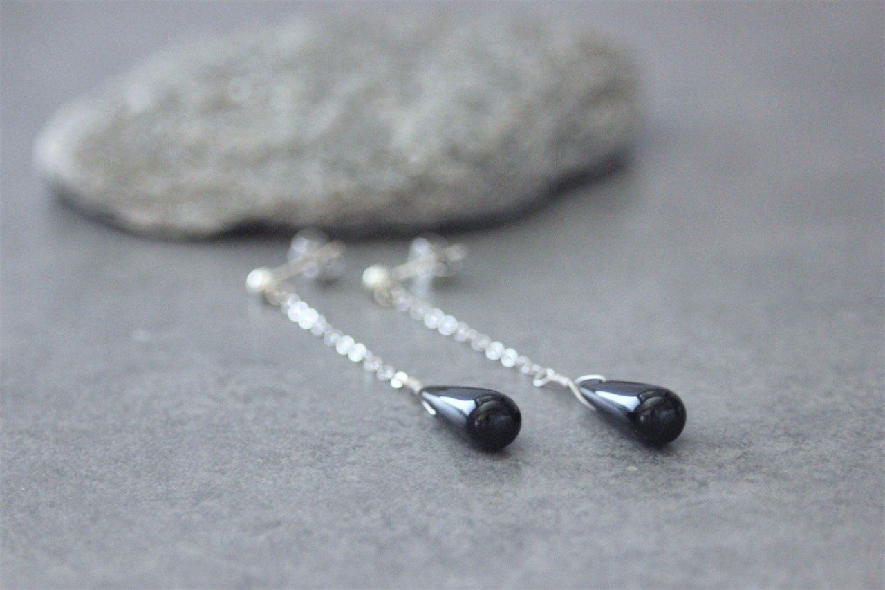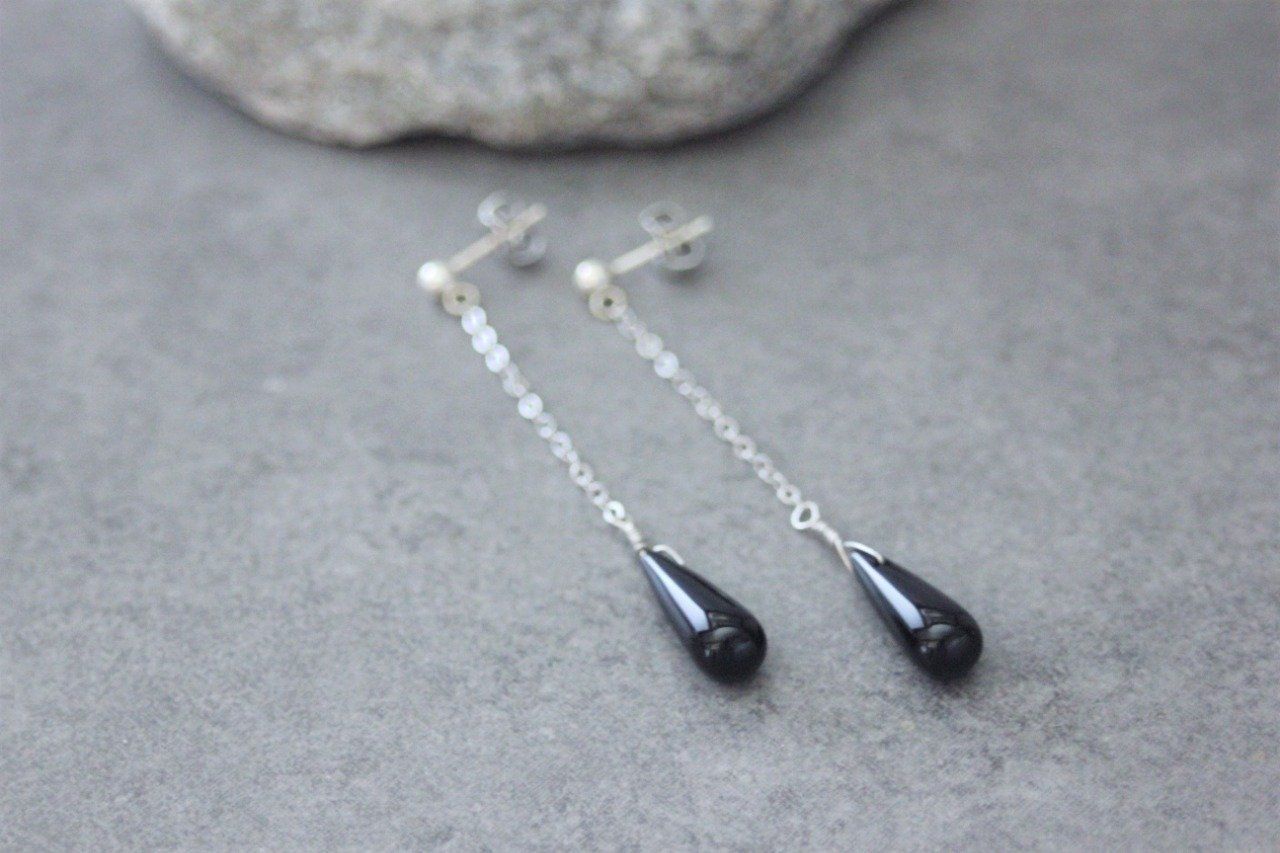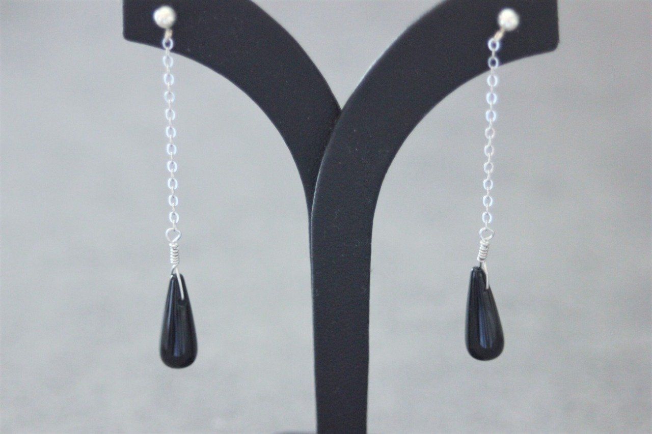 Matériaux utilisés : gouttes onyx noir et argent massif.