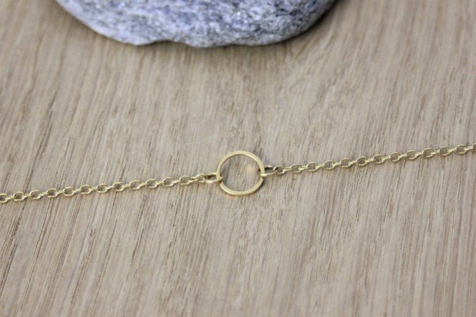 Bracelet minimaliste avec anneau en acier inoxydable doré. Longueur réglable.