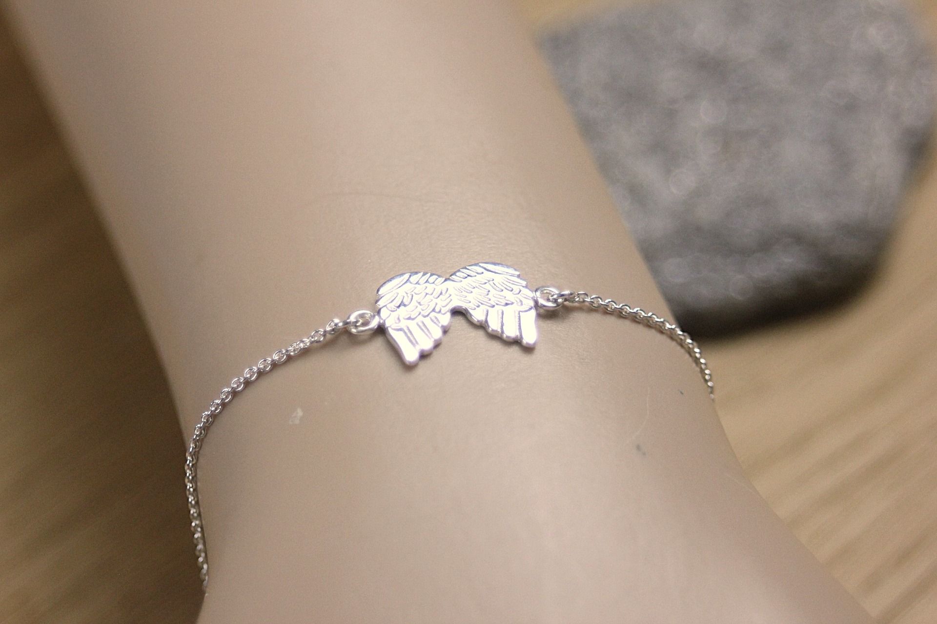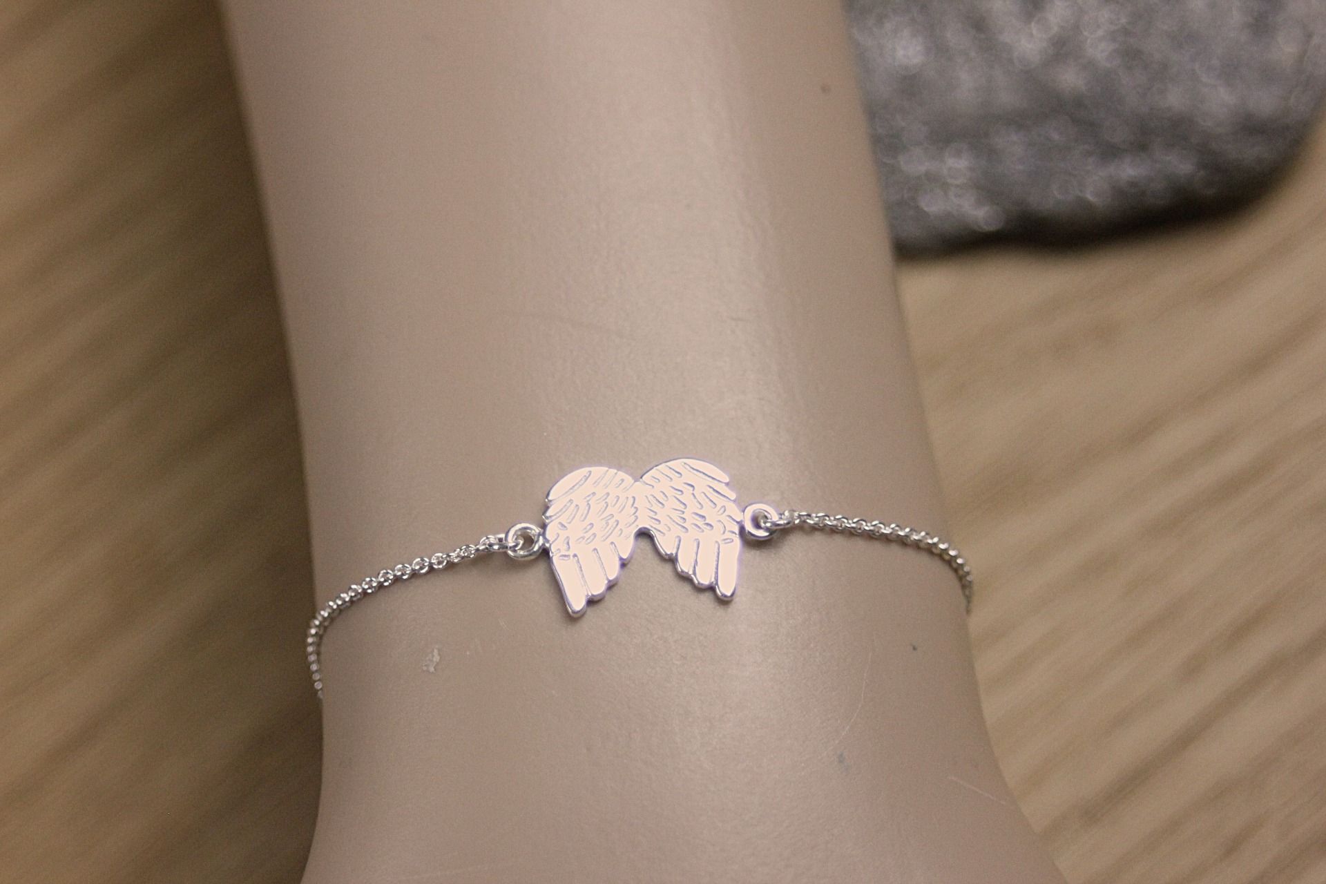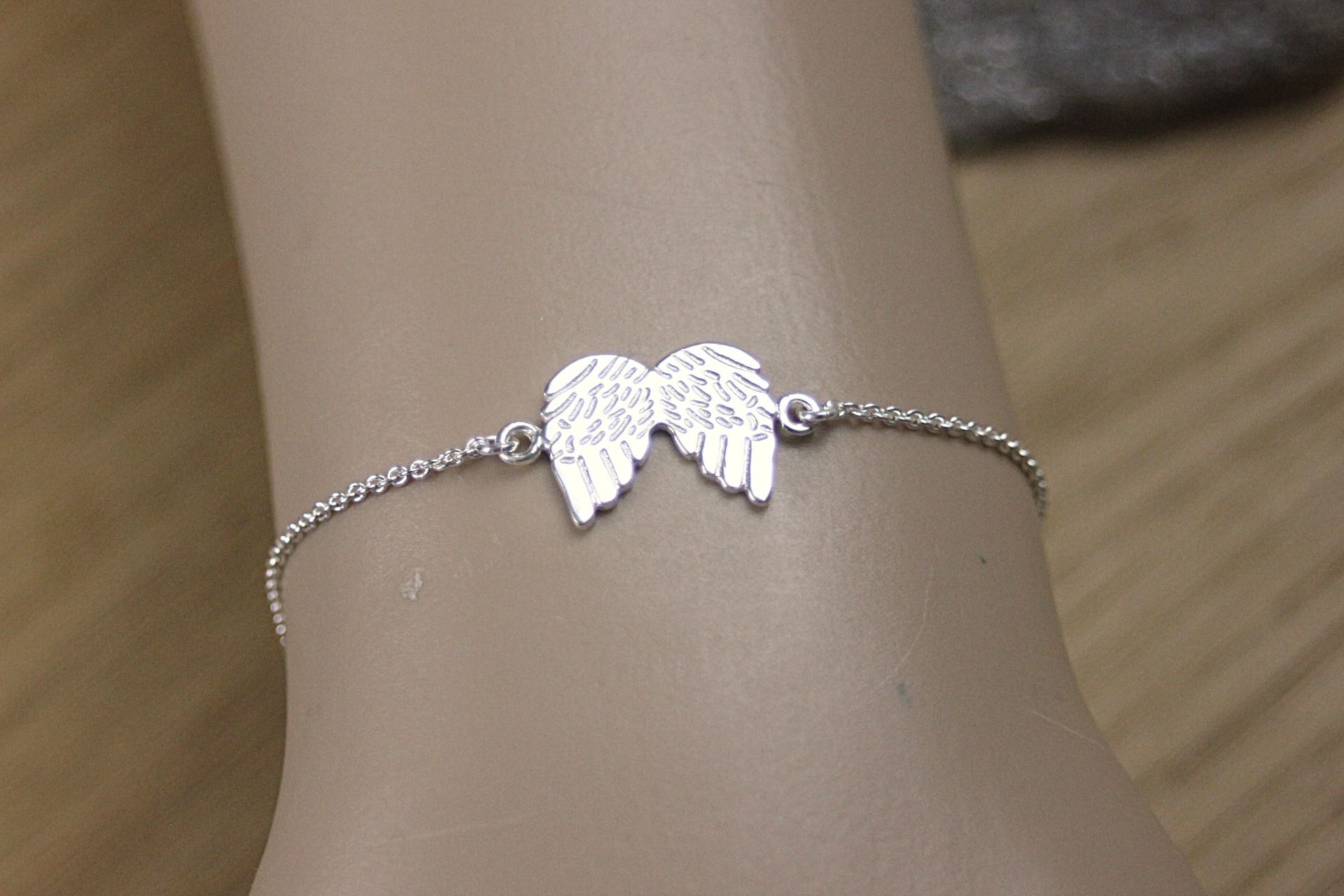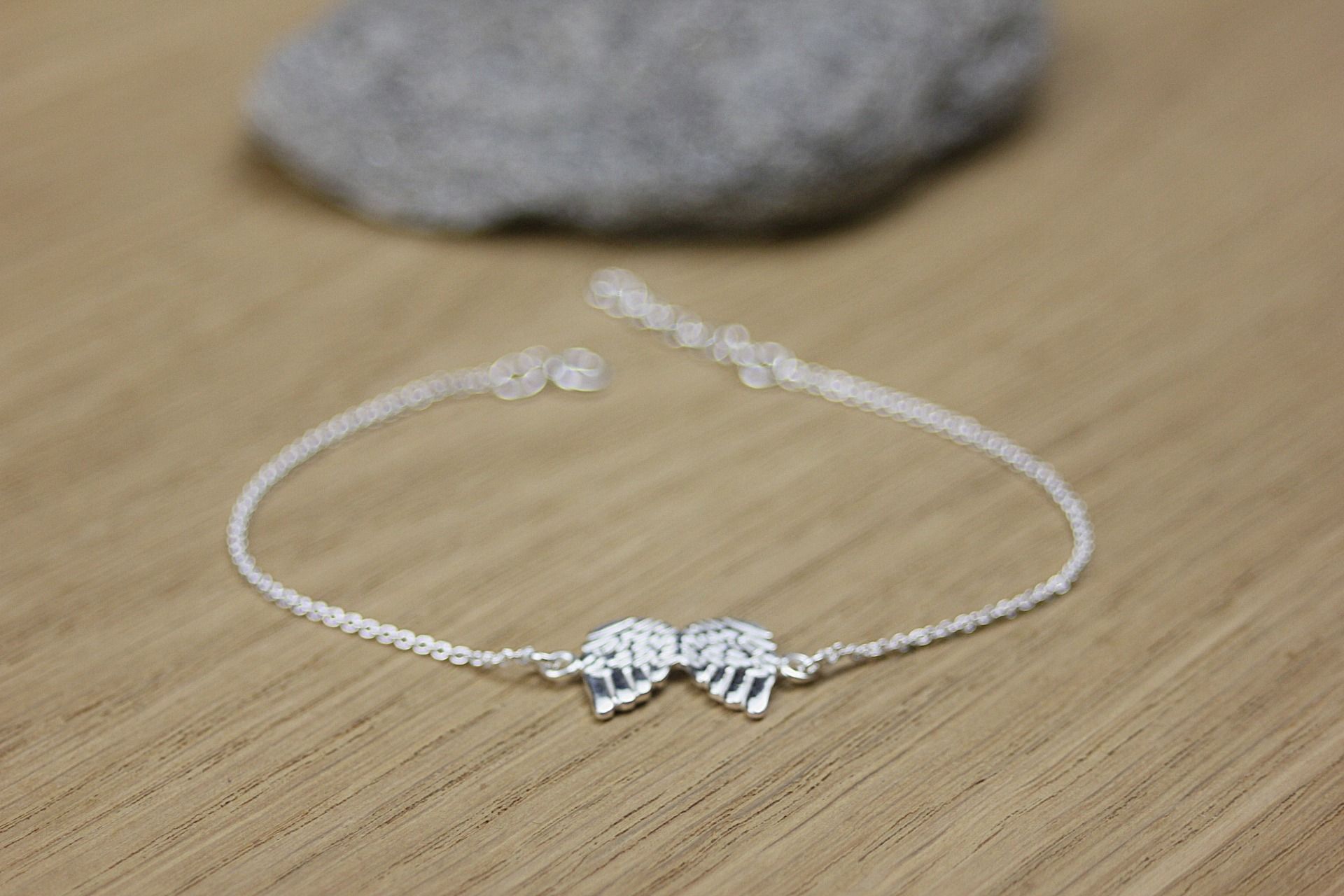 Bracelet en argent massif de style minimaliste ailes d'ange en argent massif. Longueur réglable.