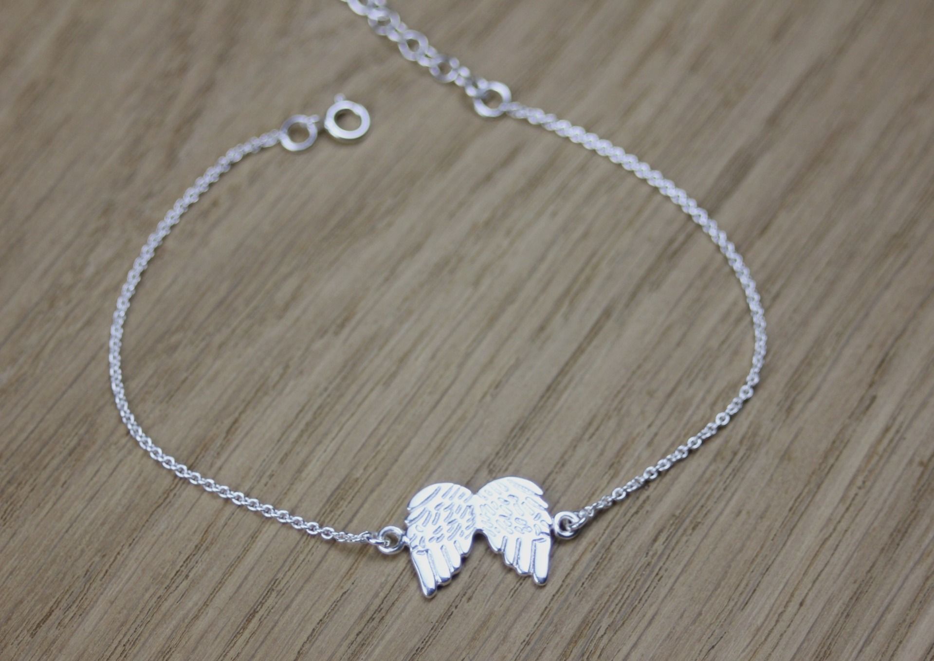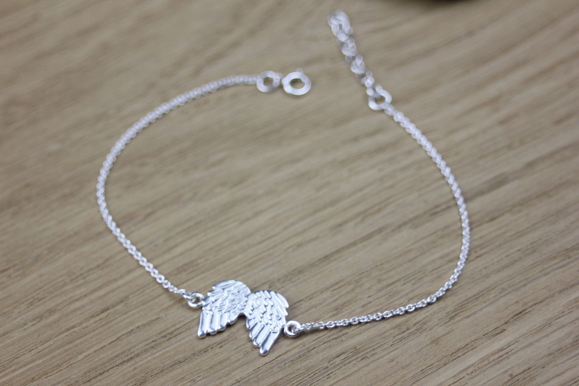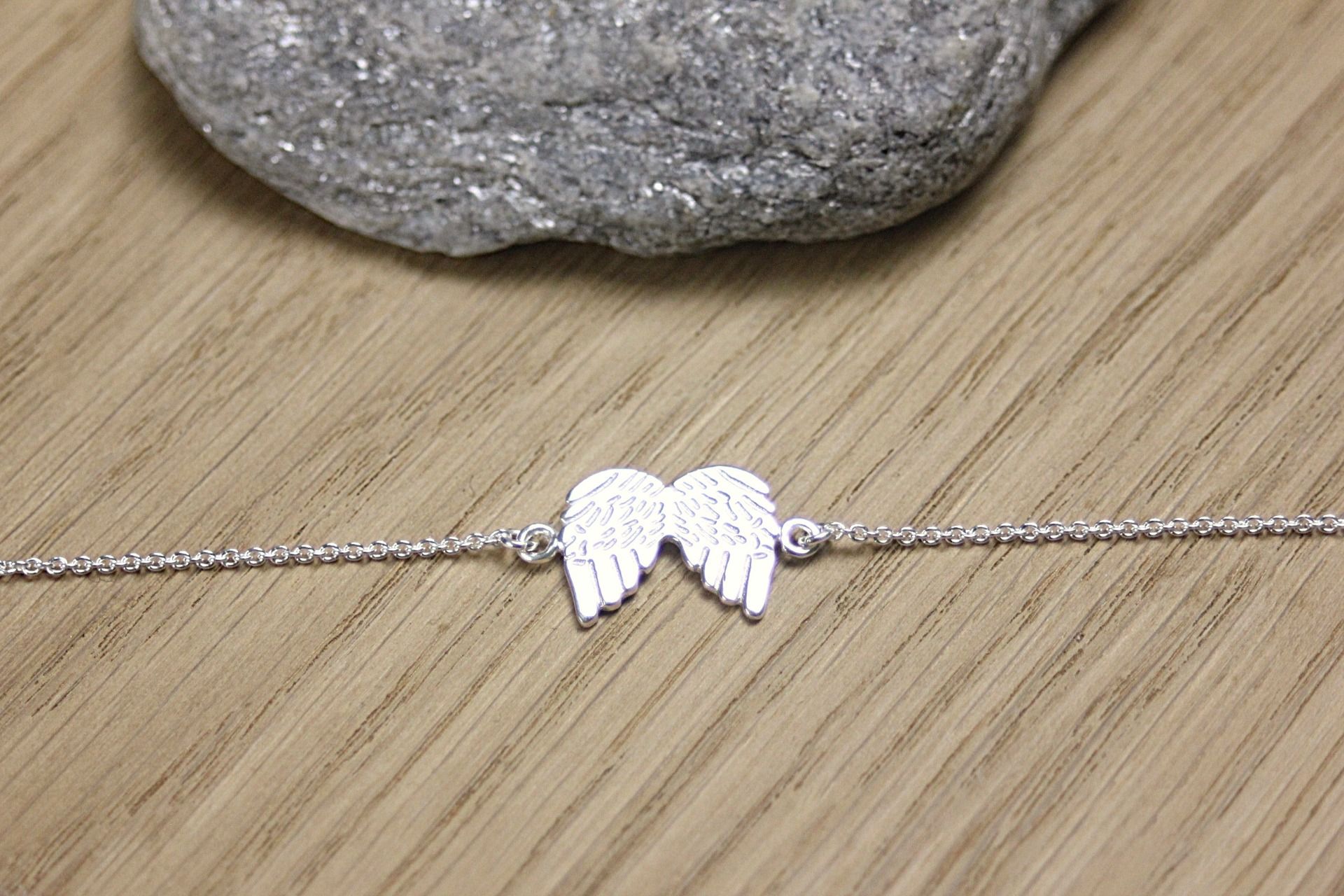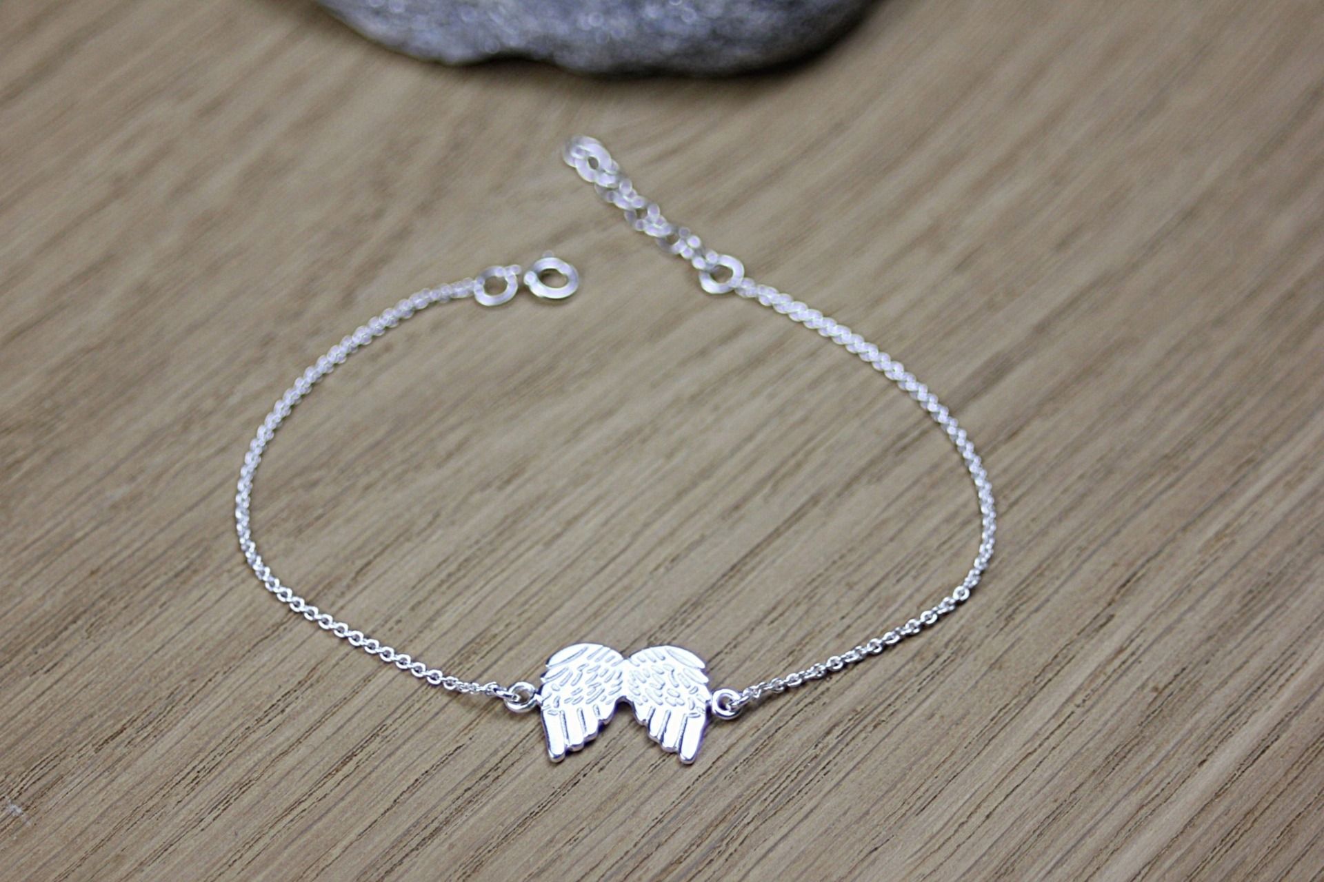 Bracelet en argent massif de style minimaliste ailes d'ange en argent massif. Longueur réglable.