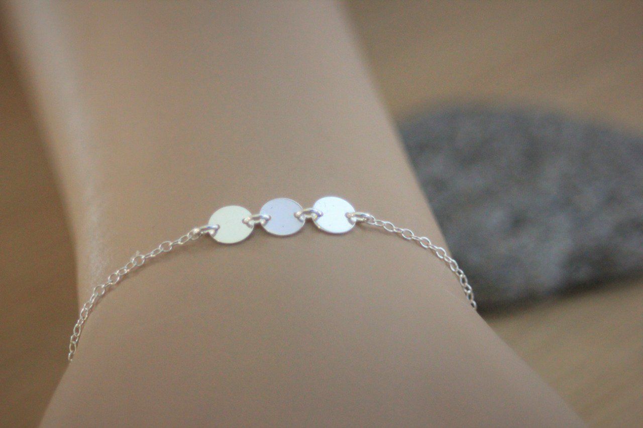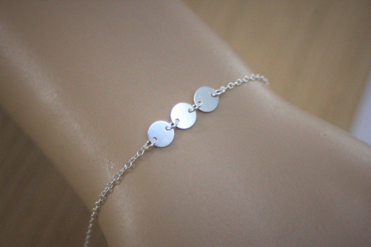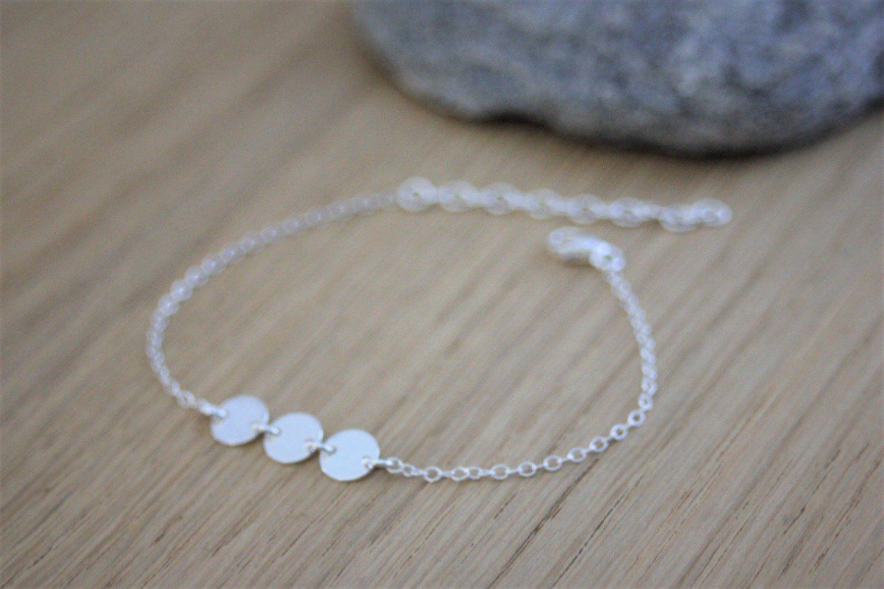 Bracelet en argent massif de style minimaliste avec 3 petites médailles rondes en argent. Plusieurs longueurs disponibles. Longueur réglable.