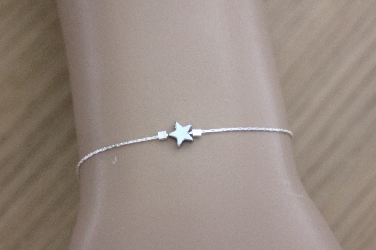Bracelet en argent massif et étoile en hématite argentée - bracelet fin en argent