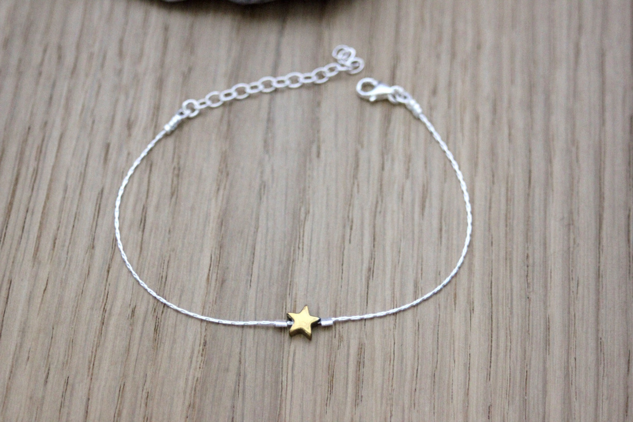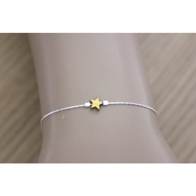 Bracelet en argent massif et étoile en hématite dorée - bracelet fin en argent