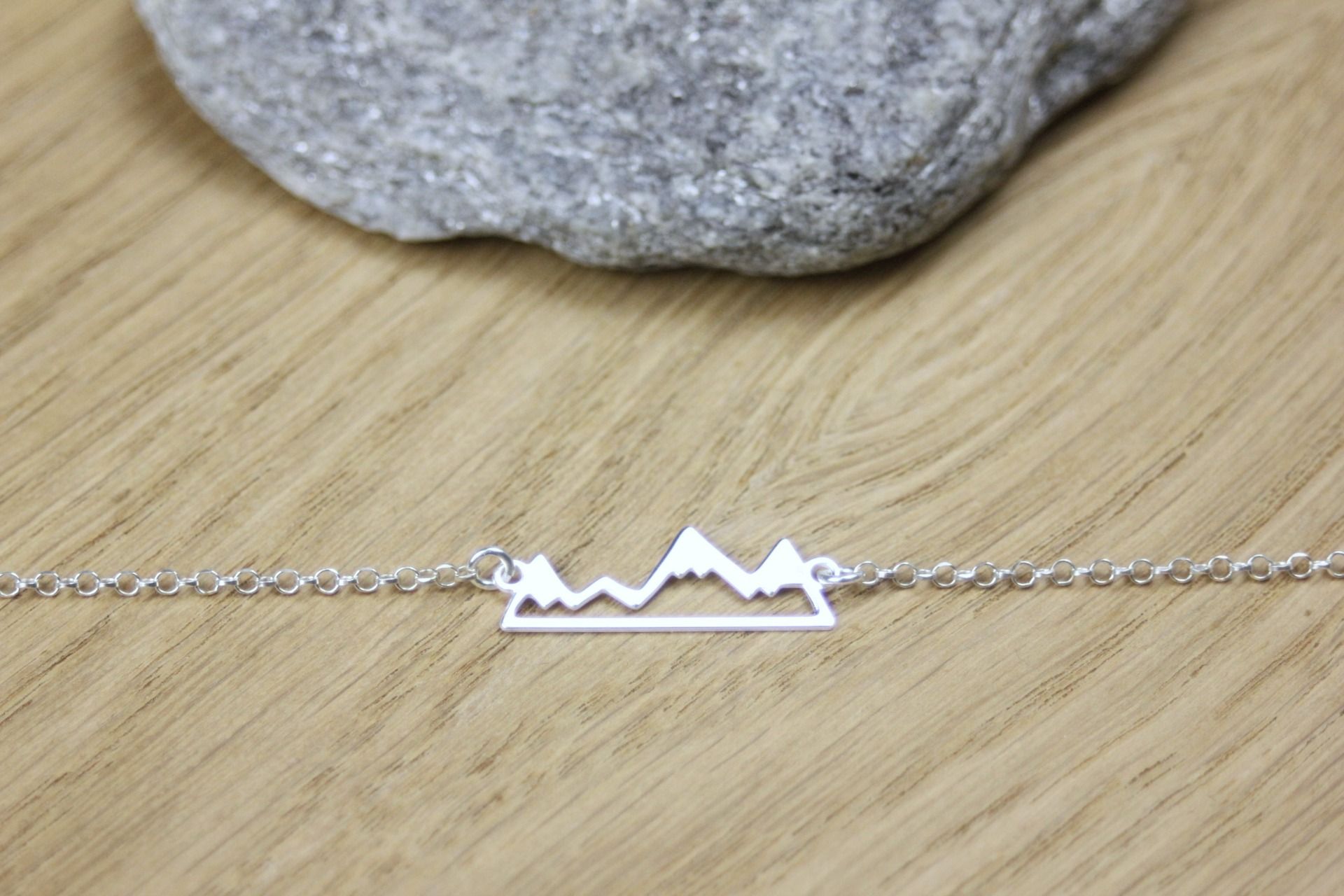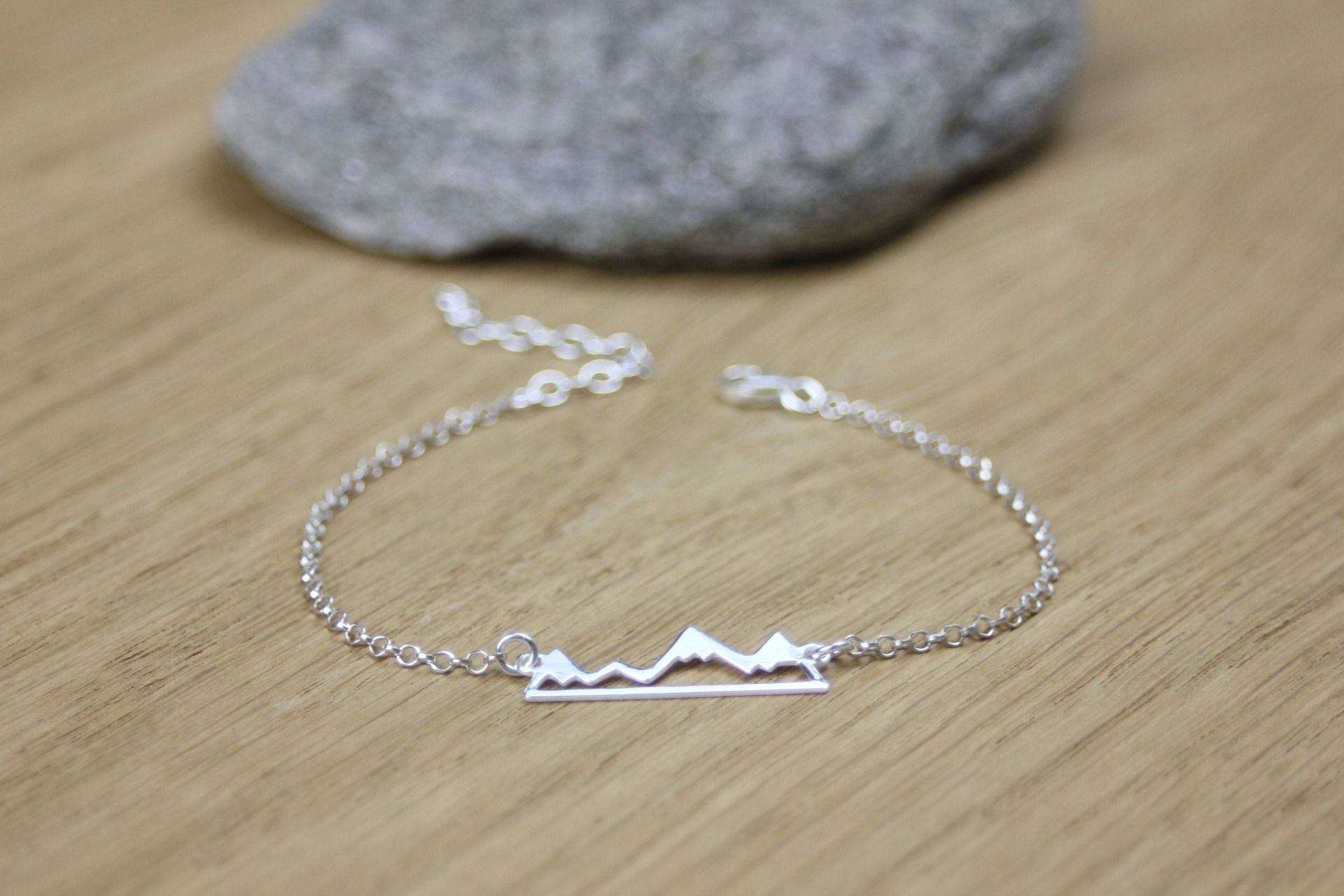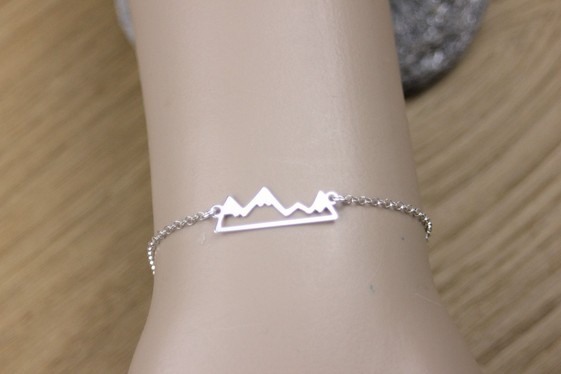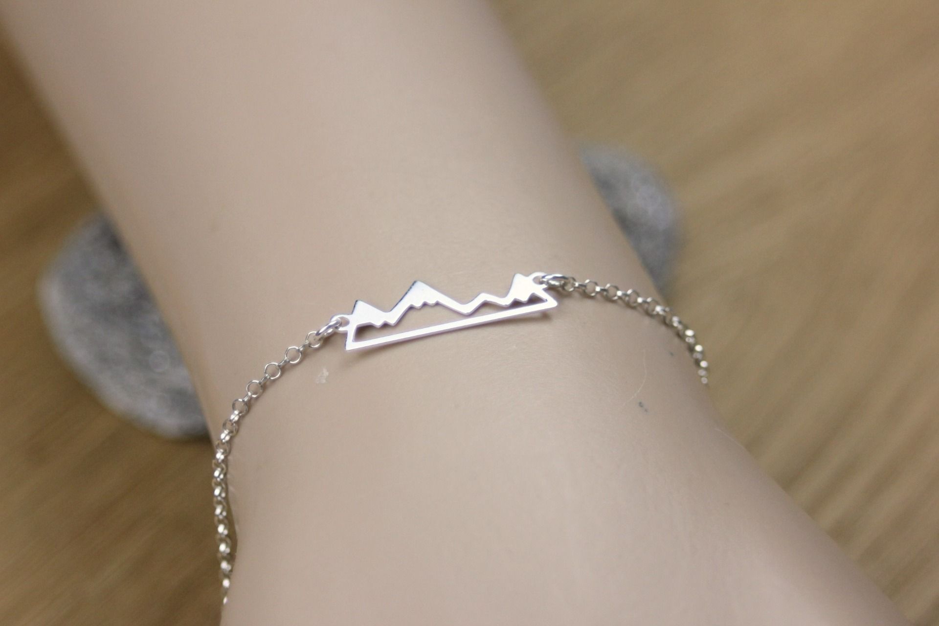 Bracelet en argent massif de style minimaliste montagnes enneigées en argent massif. Plusieurs longueurs disponibles. Longueur réglable.