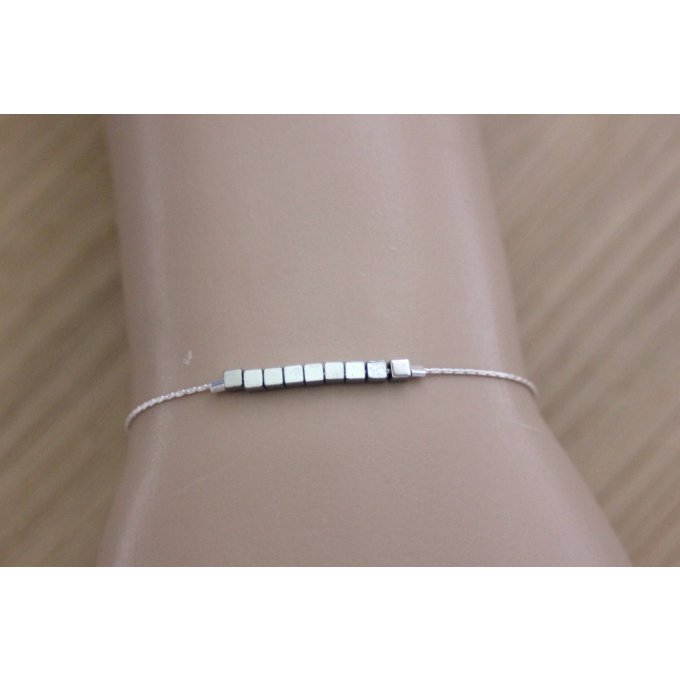 Bracelet argent petits cubes en hématite argenté 2mm
