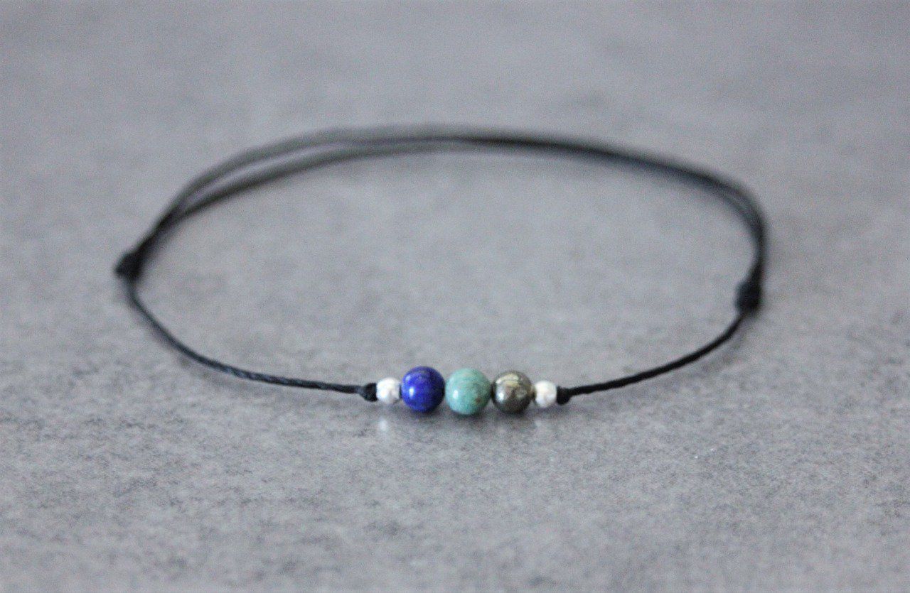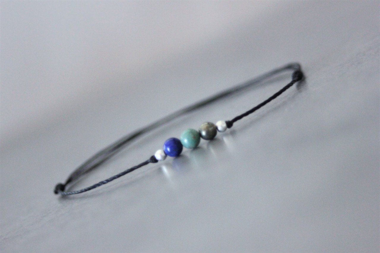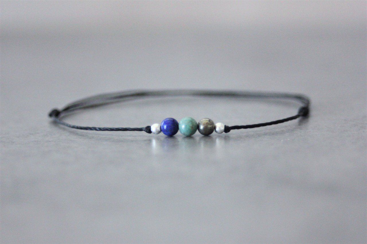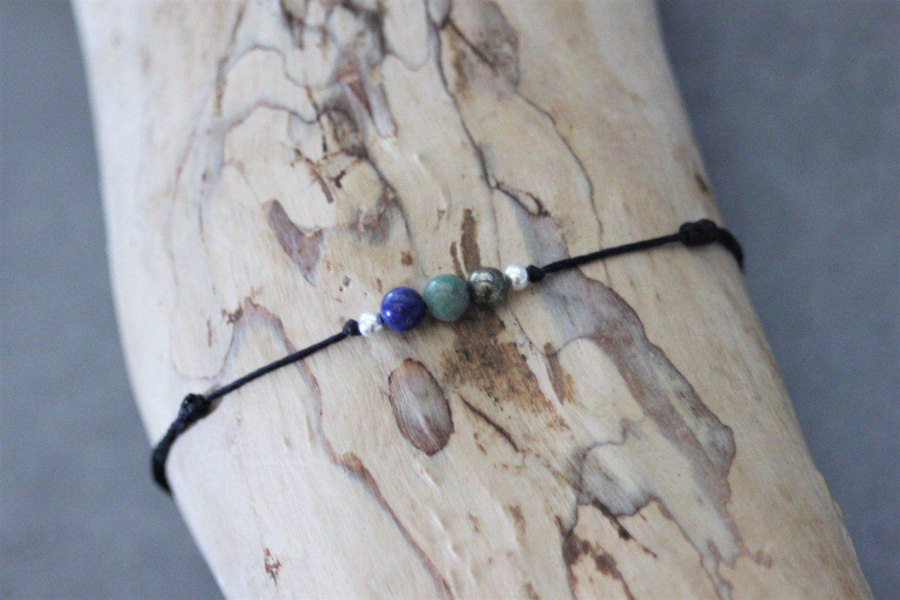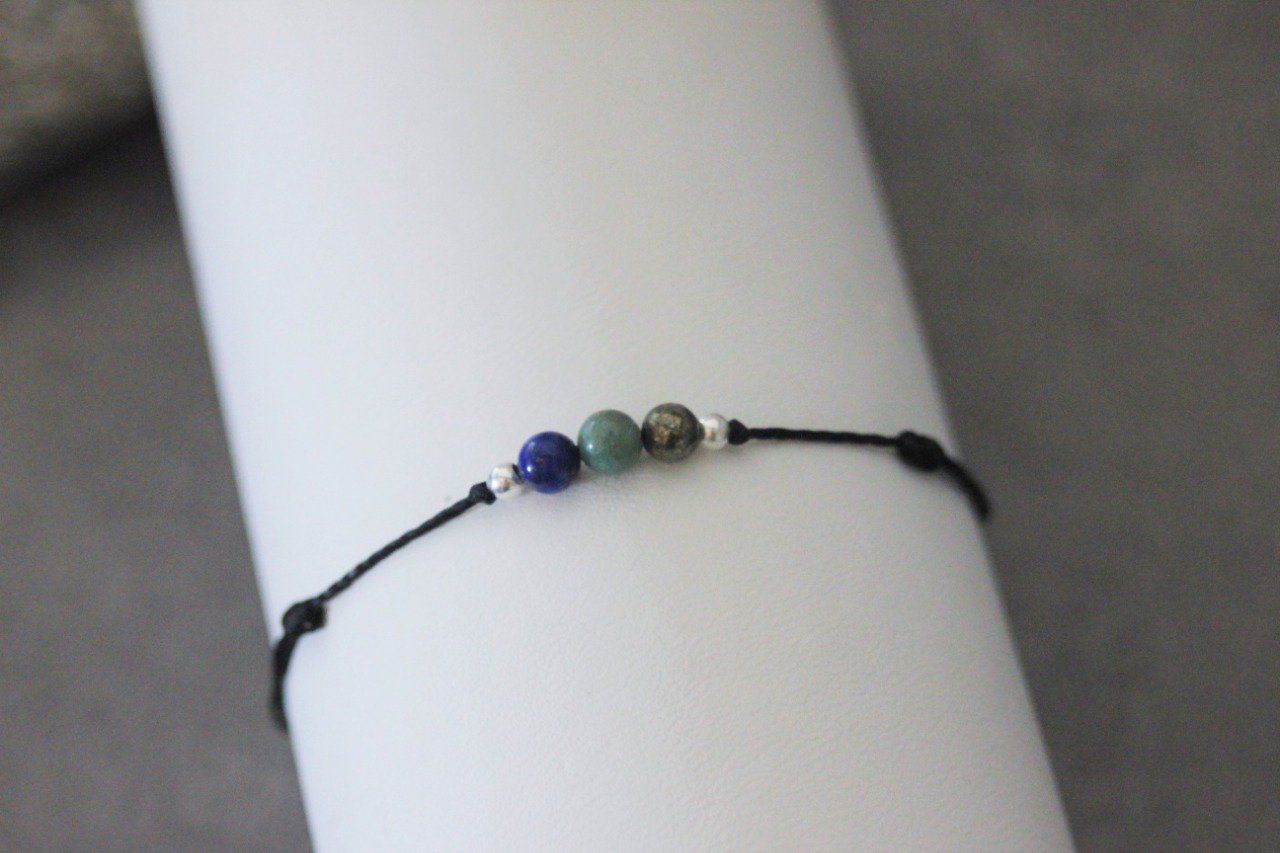 Bracelet 3 perles en pierres naturelles, pyrite, australian dragon blood jade, lapis lazuli Ø4mm et perles argent massif 925 - bracelet femme en pierres naturelles - bracelet cordon