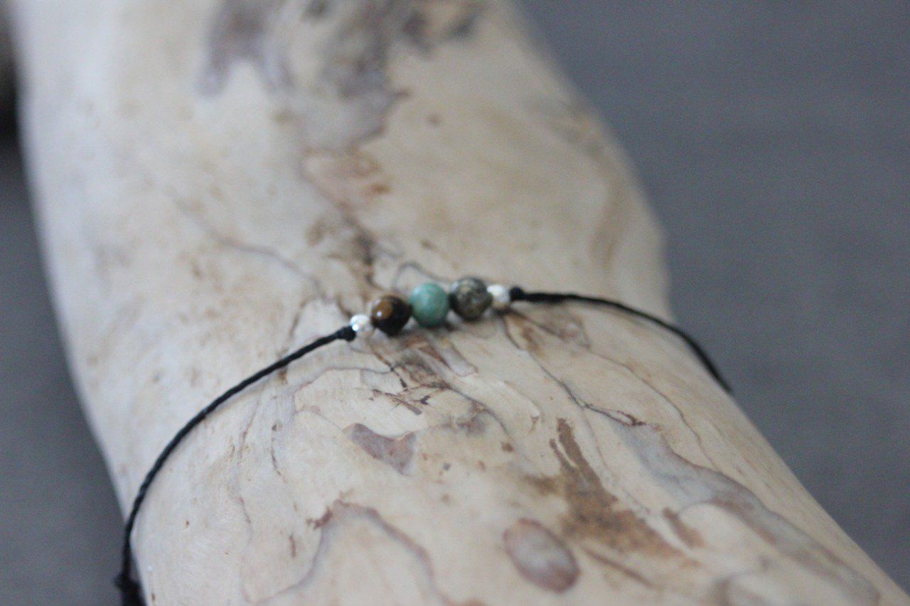 Bracelet en pierres naturelles semi-précieuses et argent massif 925, conçu et réalisé à la main, dans mon atelier.