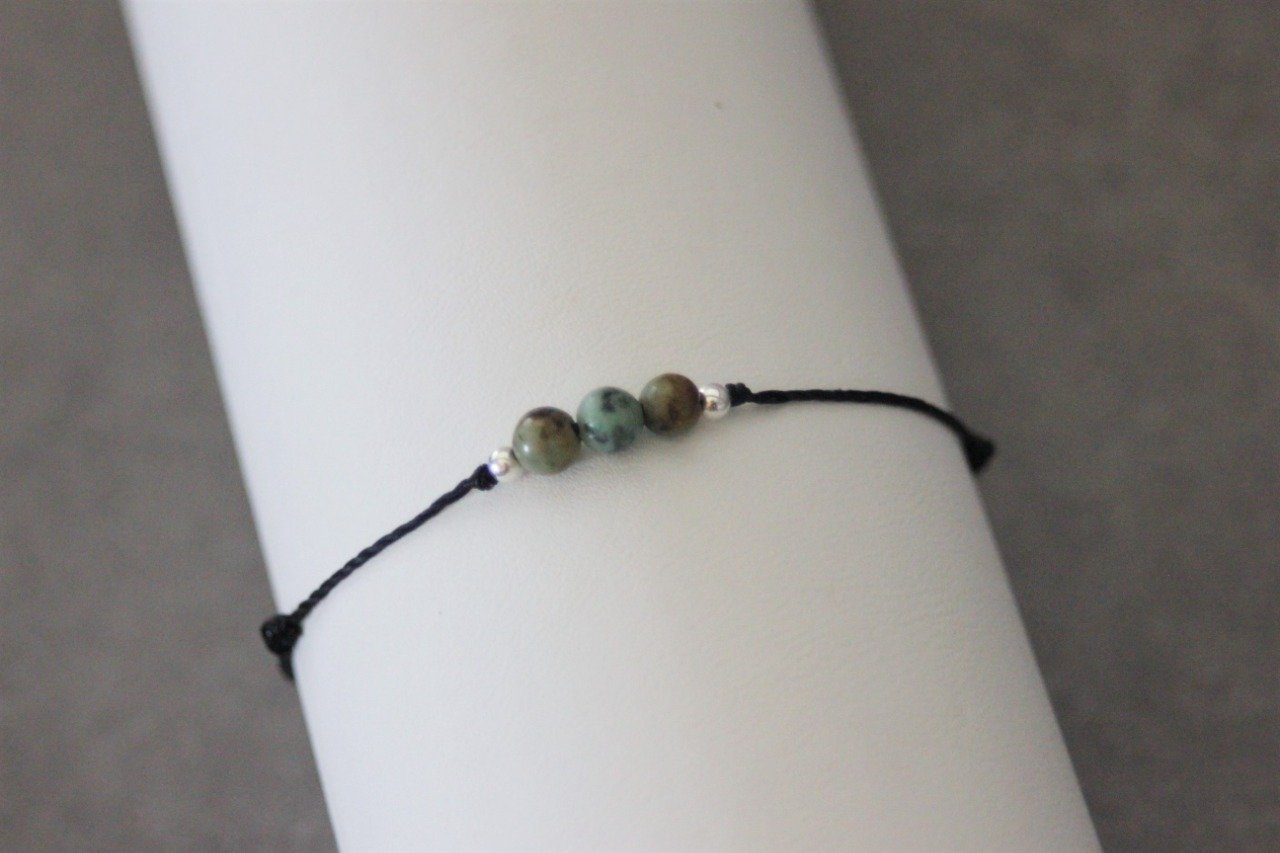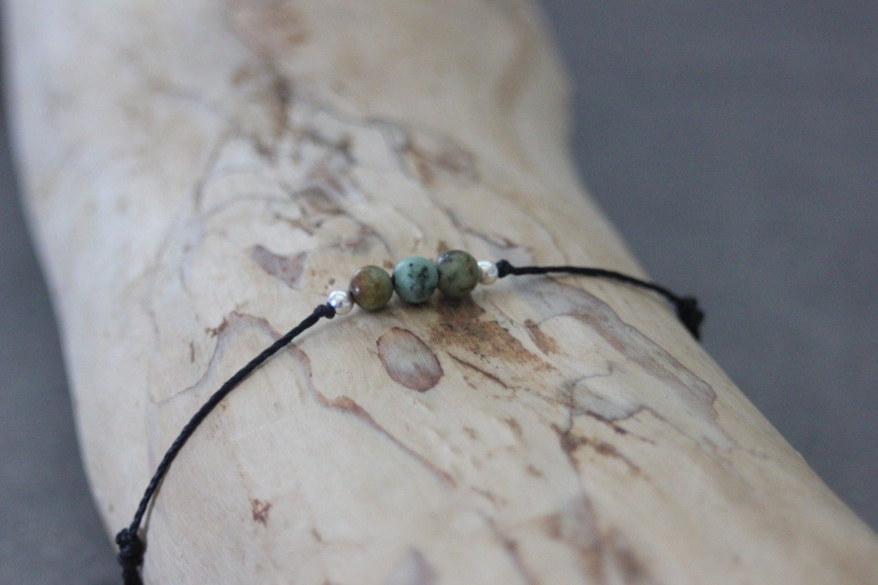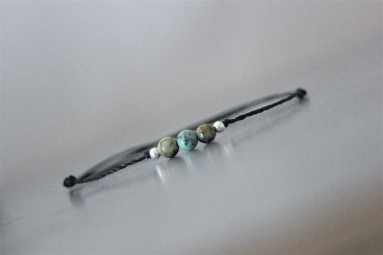 Bracelet 3 perles en pierres naturelles, turquoise africaine Ø4mm et perles argent massif 925 - bracelet femme en pierres naturelles - bracelet cordon