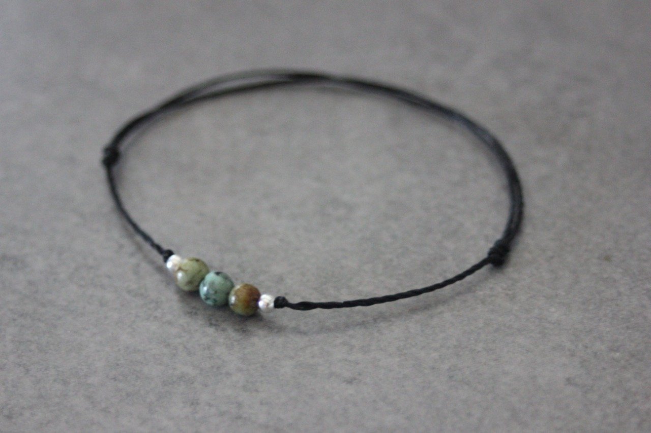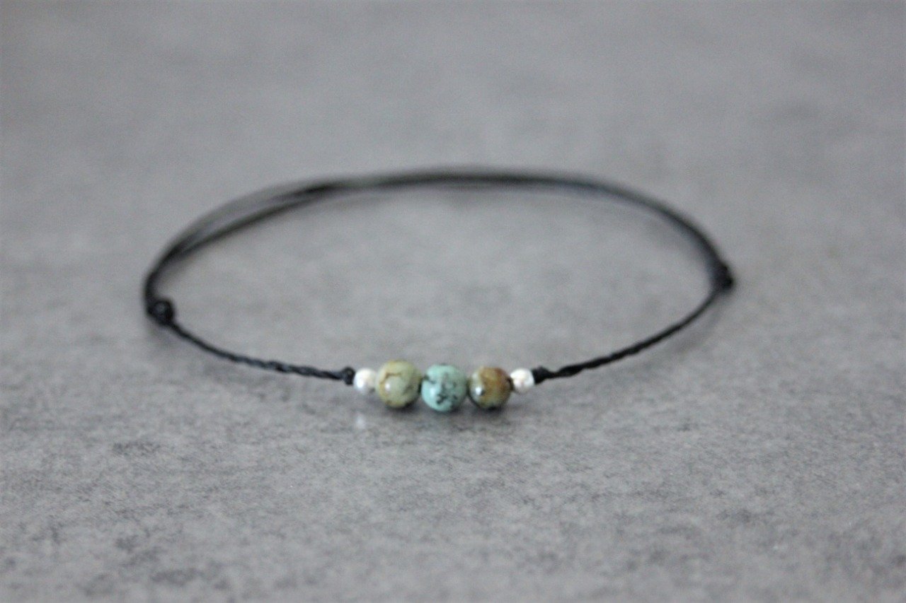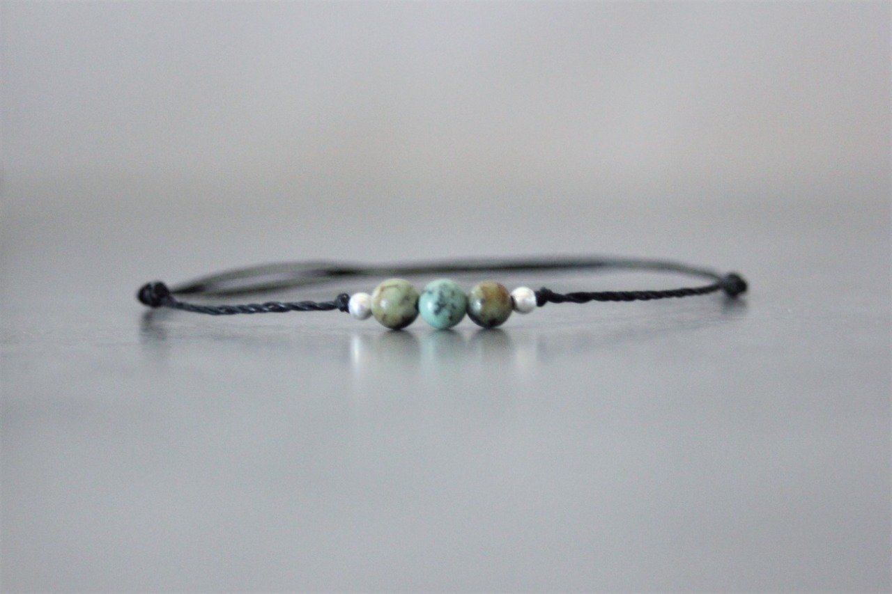 Bracelet 3 perles en pierres naturelles, turquoise africaine Ø4mm et perles argent massif 925 - bracelet femme en pierres naturelles - bracelet cordon