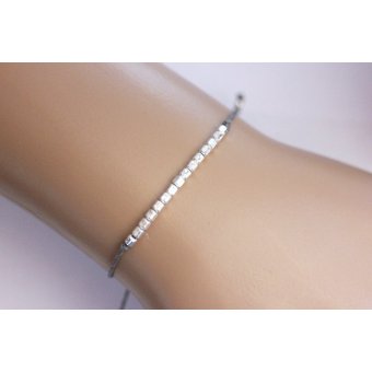 Bracelet cordon et petites perles cube argent 925