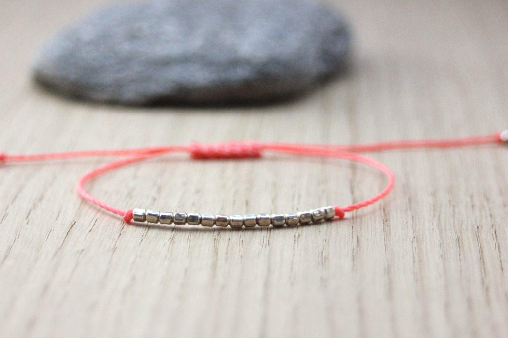 Bracelet cordon et perles cube en argent 925. Bracelet réglable. Cordon à personnaliser parmi 14 couleurs.