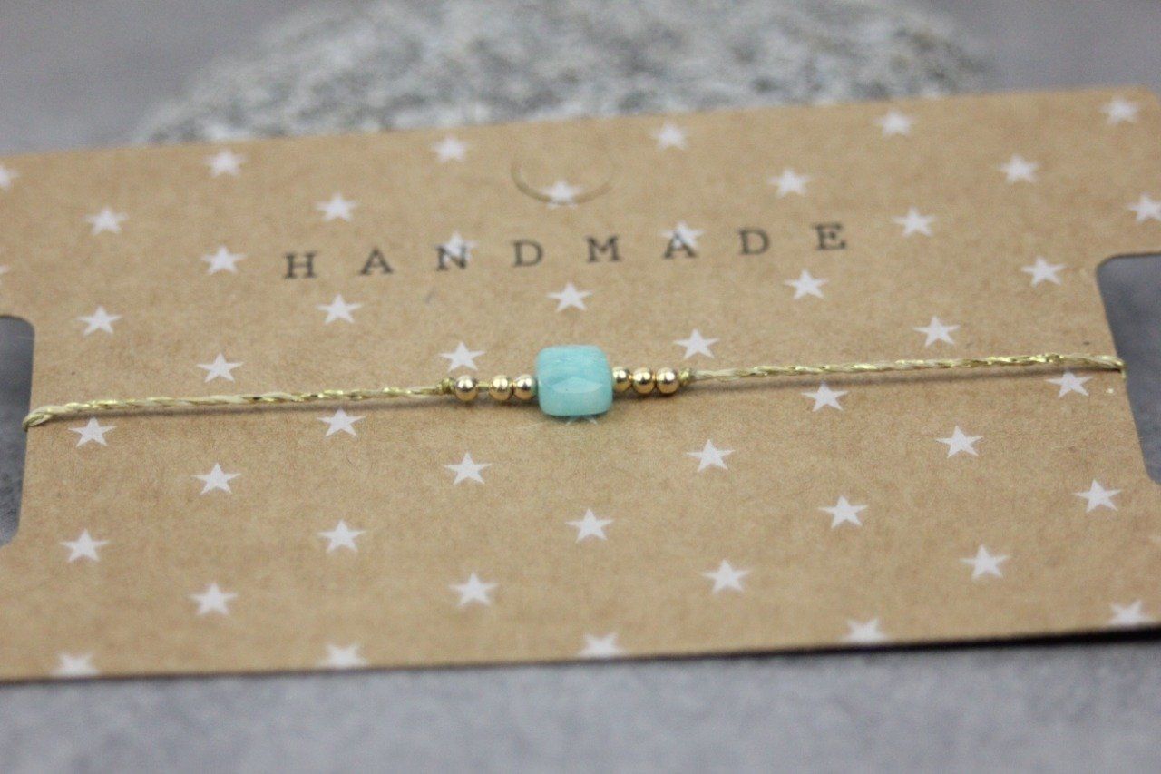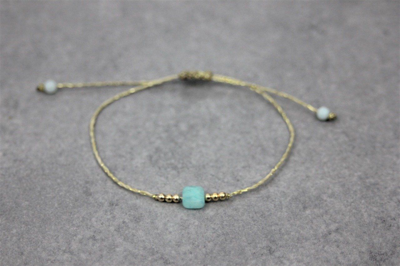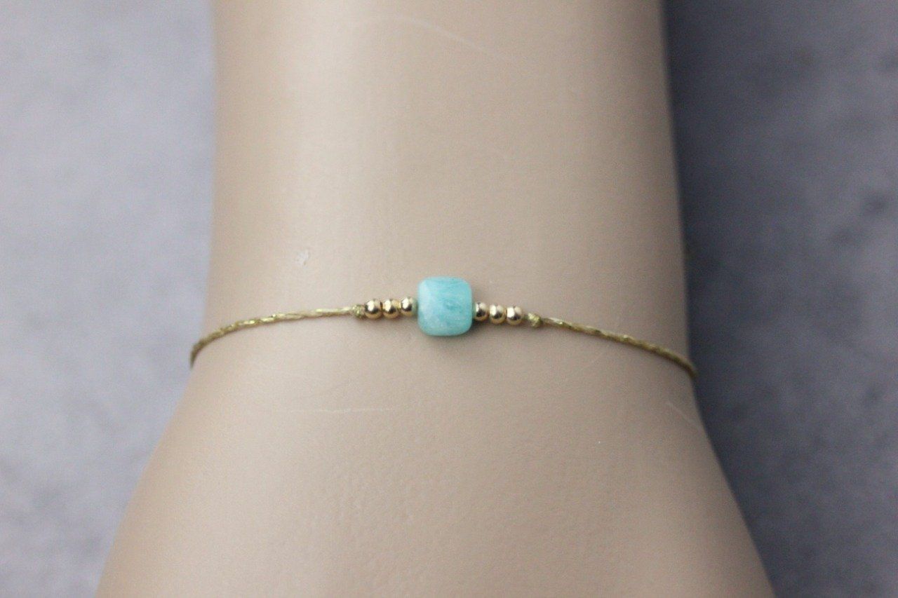 Bracelet perle carré en pierre naturelle amazonite et perles or gold filled - bracelet femme en pierres naturelles - bracelet cordon