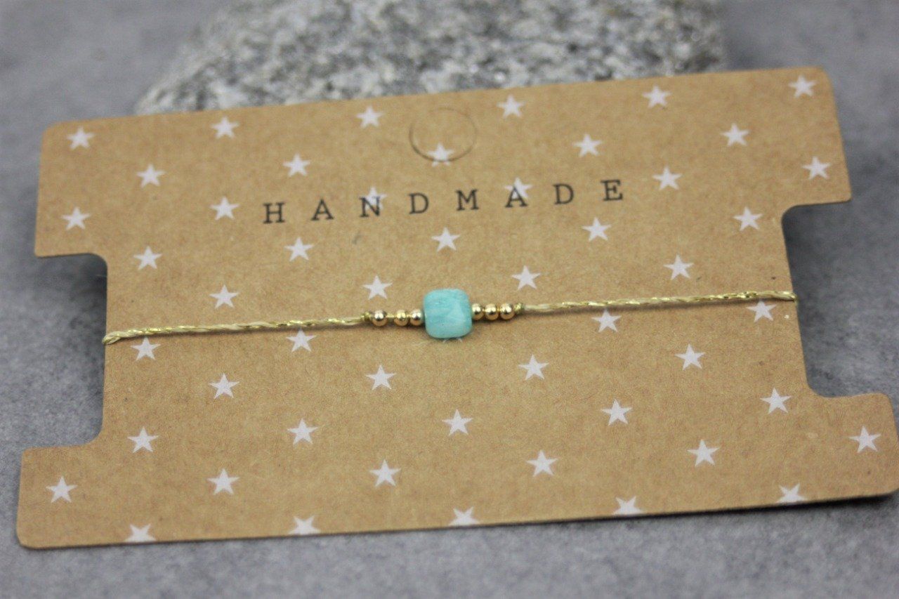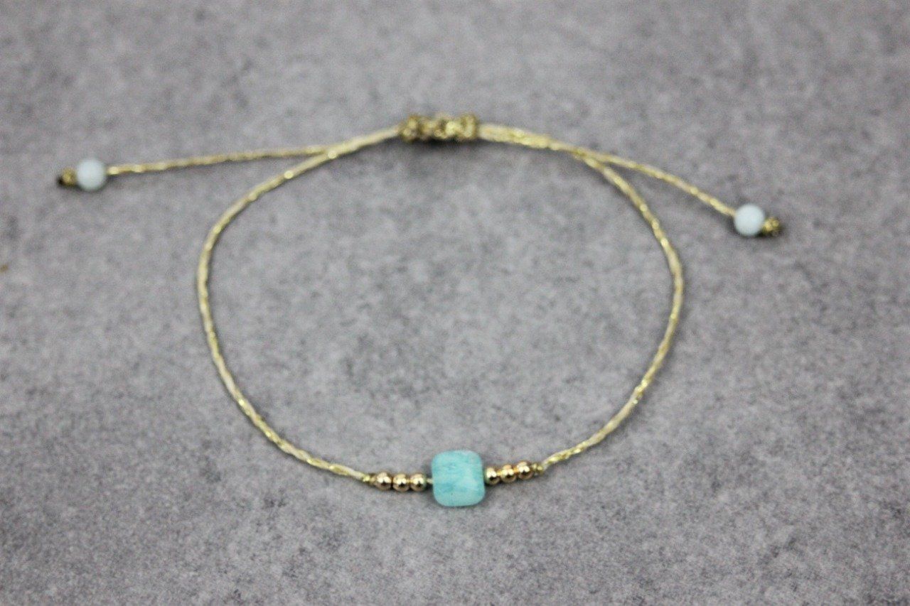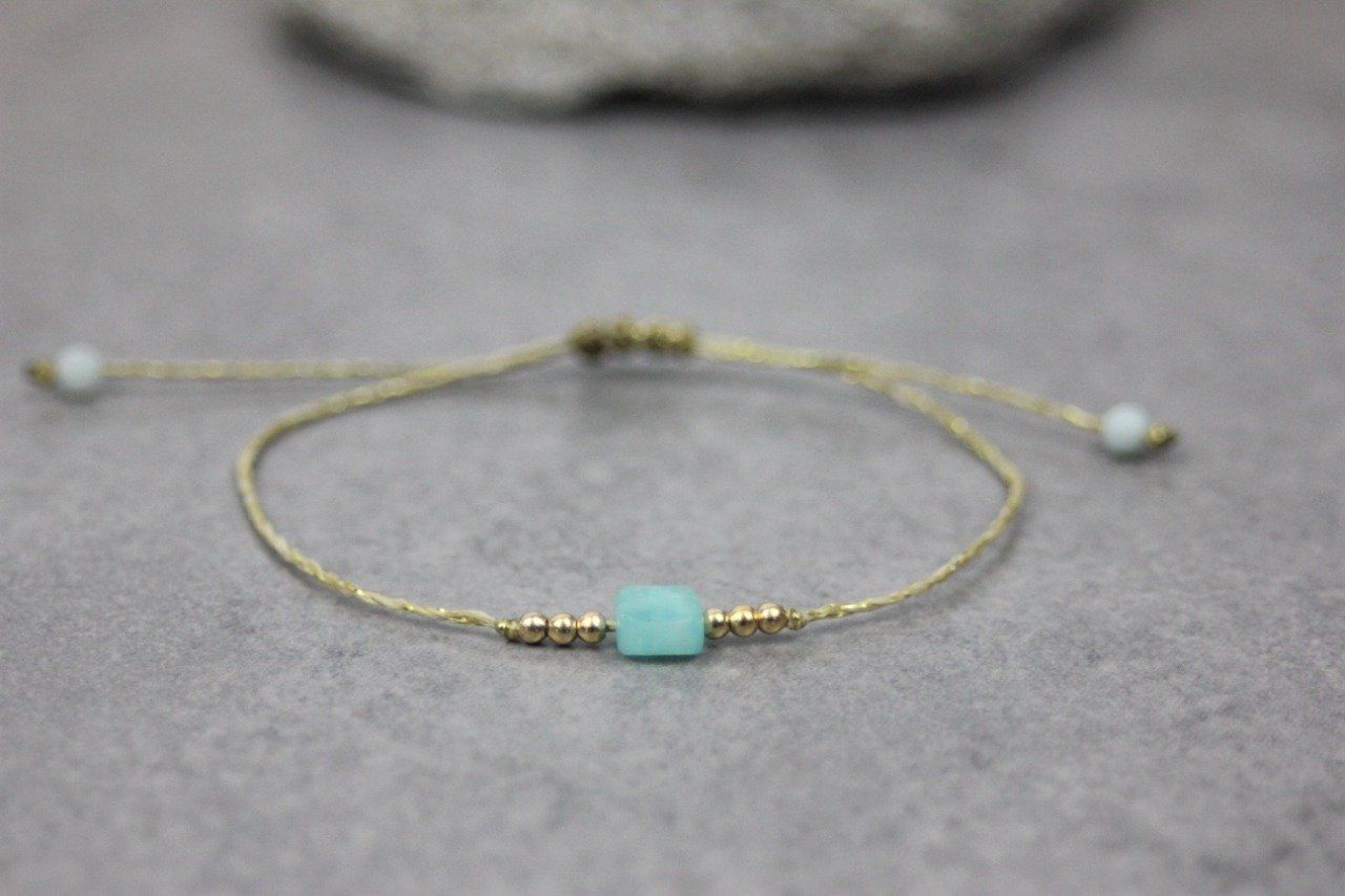 Bracelet perle carré en pierre naturelle amazonite et perles or gold filled - bracelet femme en pierres naturelles - bracelet cordon
