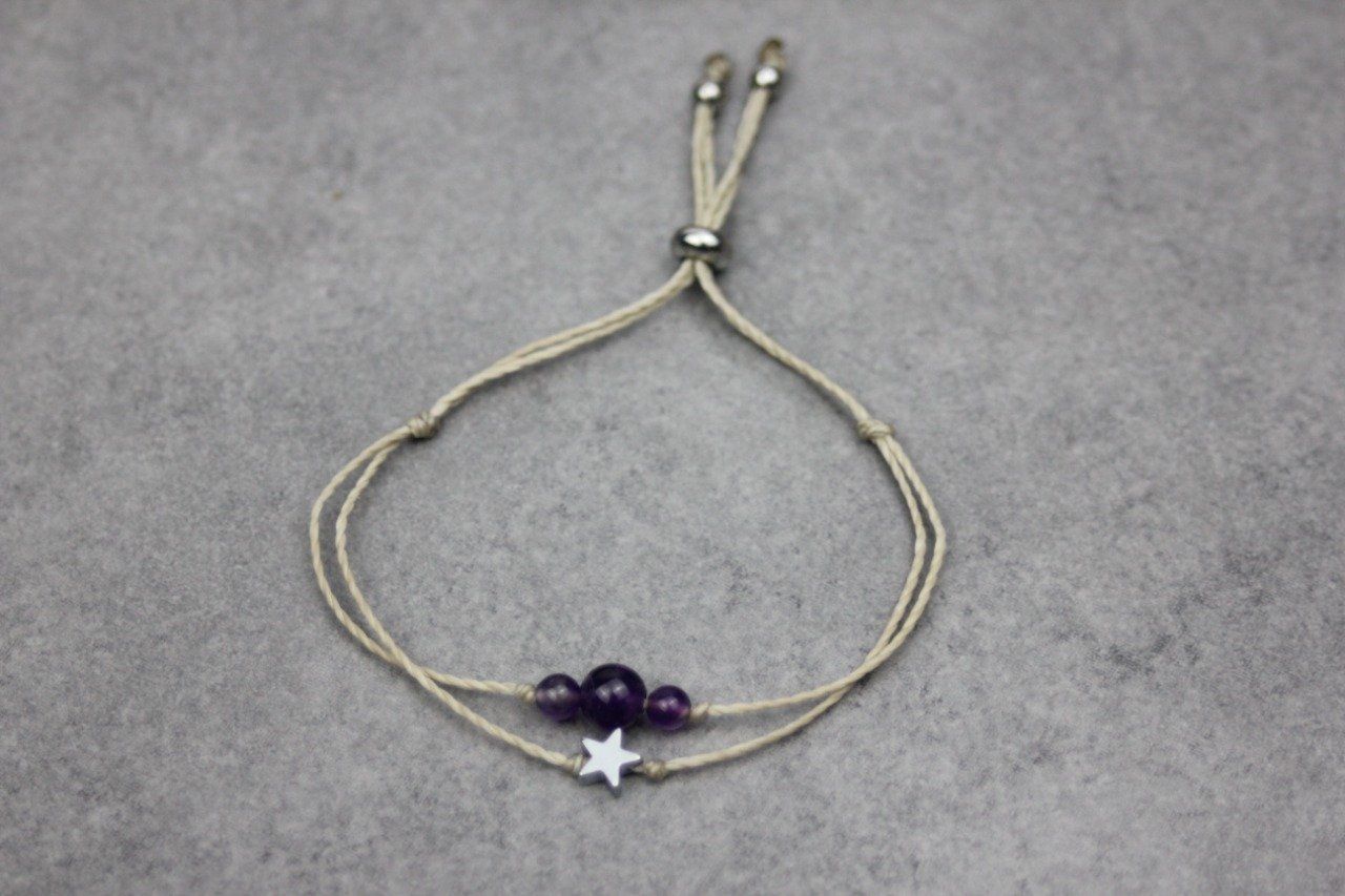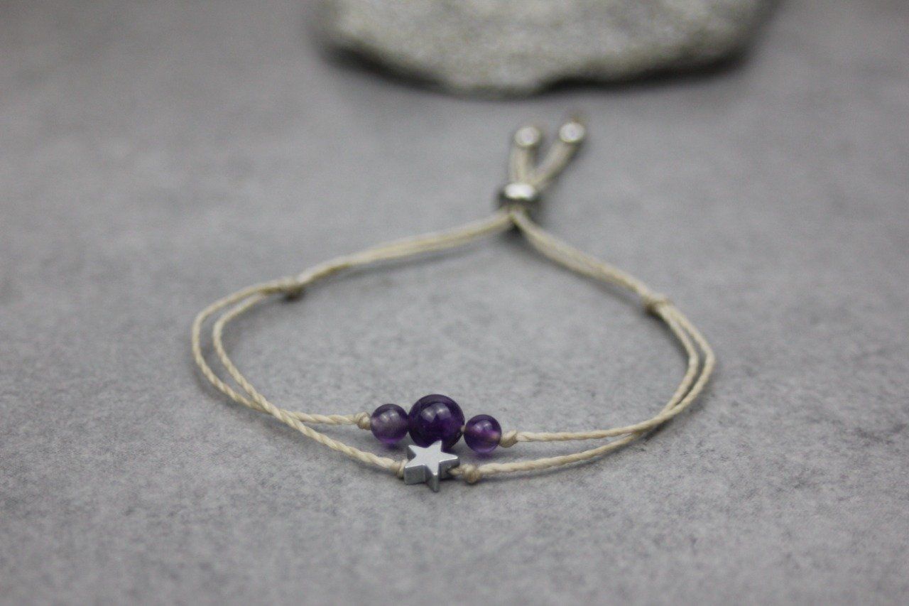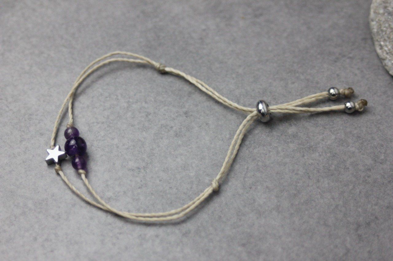 Bracelet cordon perles en améthyste, étoile hématite et perles acier