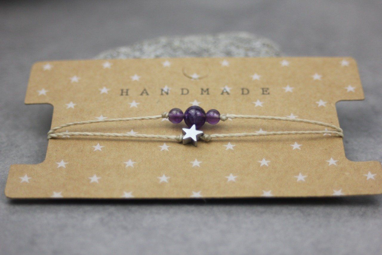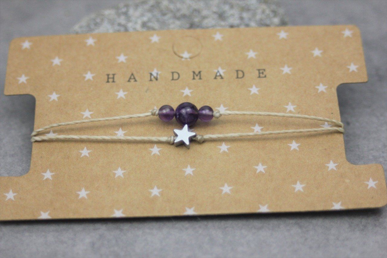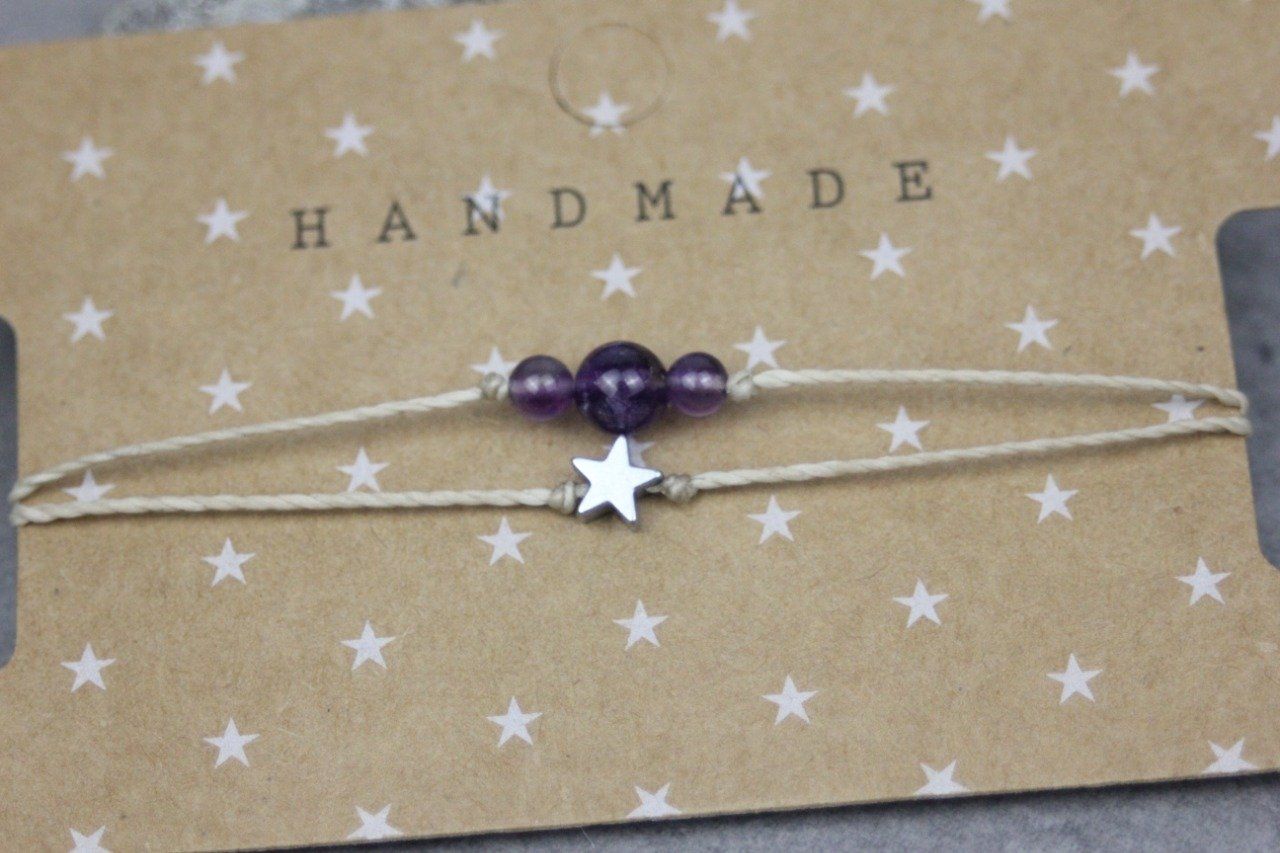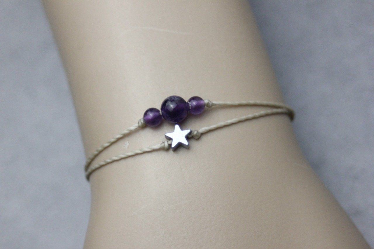 Bracelet cordon perles en améthyste, étoile hématite et perles acier