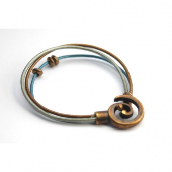 Bracelet cuir bronze bleu argent fermoir spirale