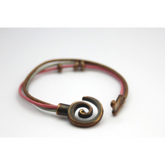 Bracelet en cuir 3 cordons bronze rose argent fermoir spirale bronze