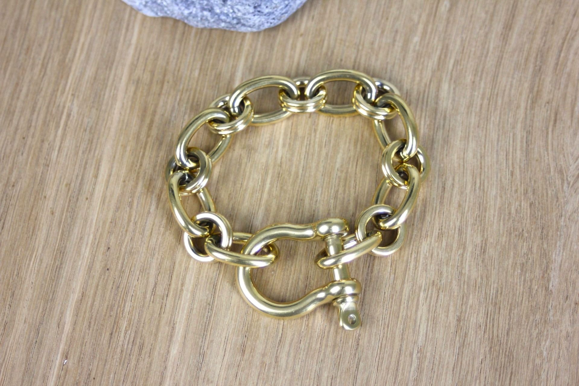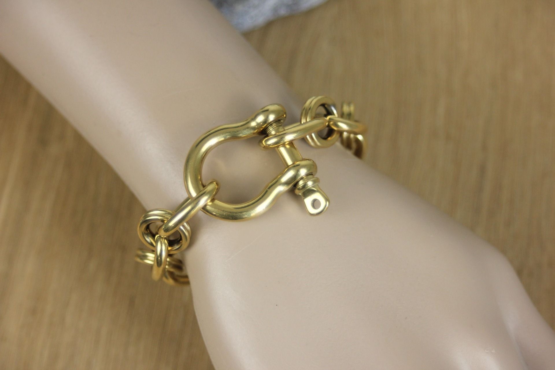 Bracelet en acier inoxydable doré maille XXL avec fermoir manille