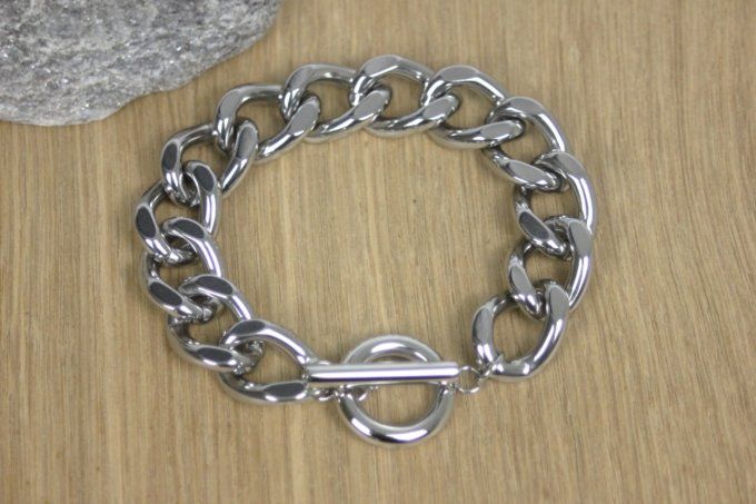 Bracelet en acier inoxydable gros maillons XL fermoir T