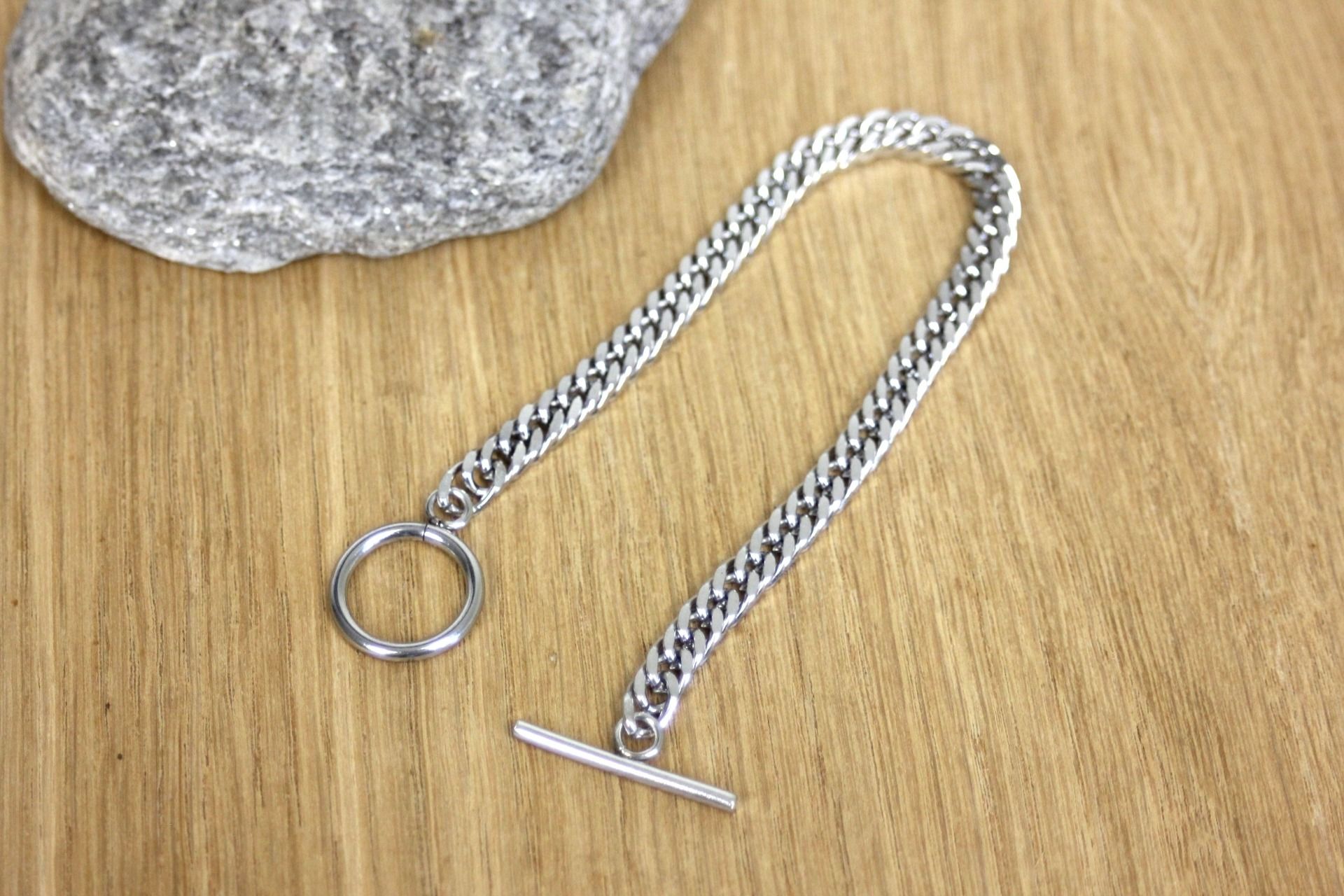 Bracelet acier inoxydable maille gourmette fermoir T - Bracelet acier - Bracelet argent - Bracelet gros maillons