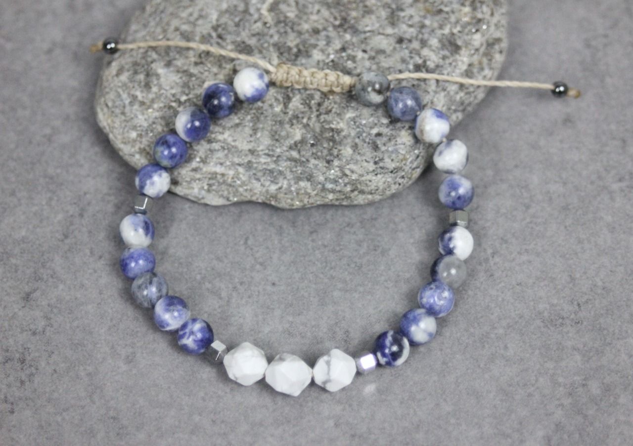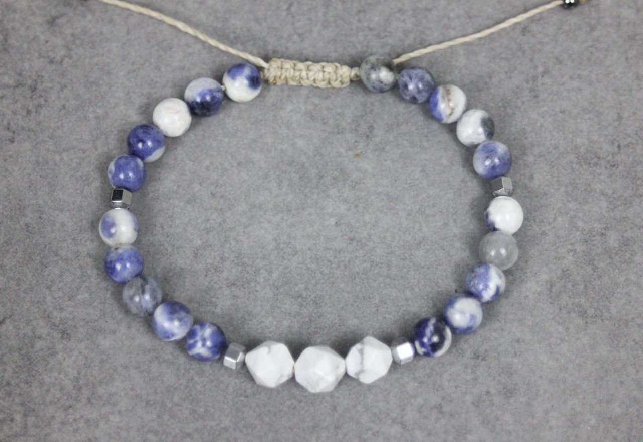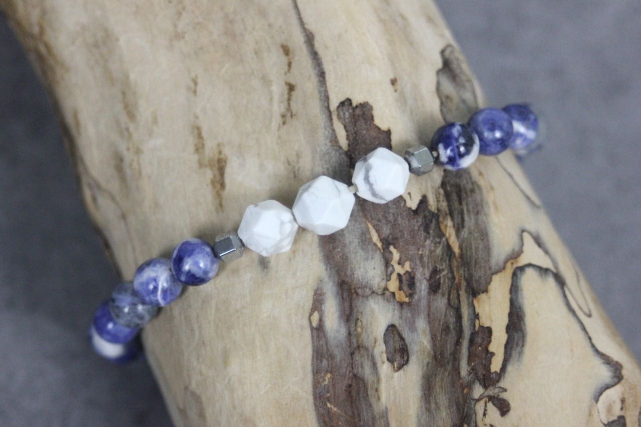 Bracelet en perles sodalite, howlite blanche et hématite