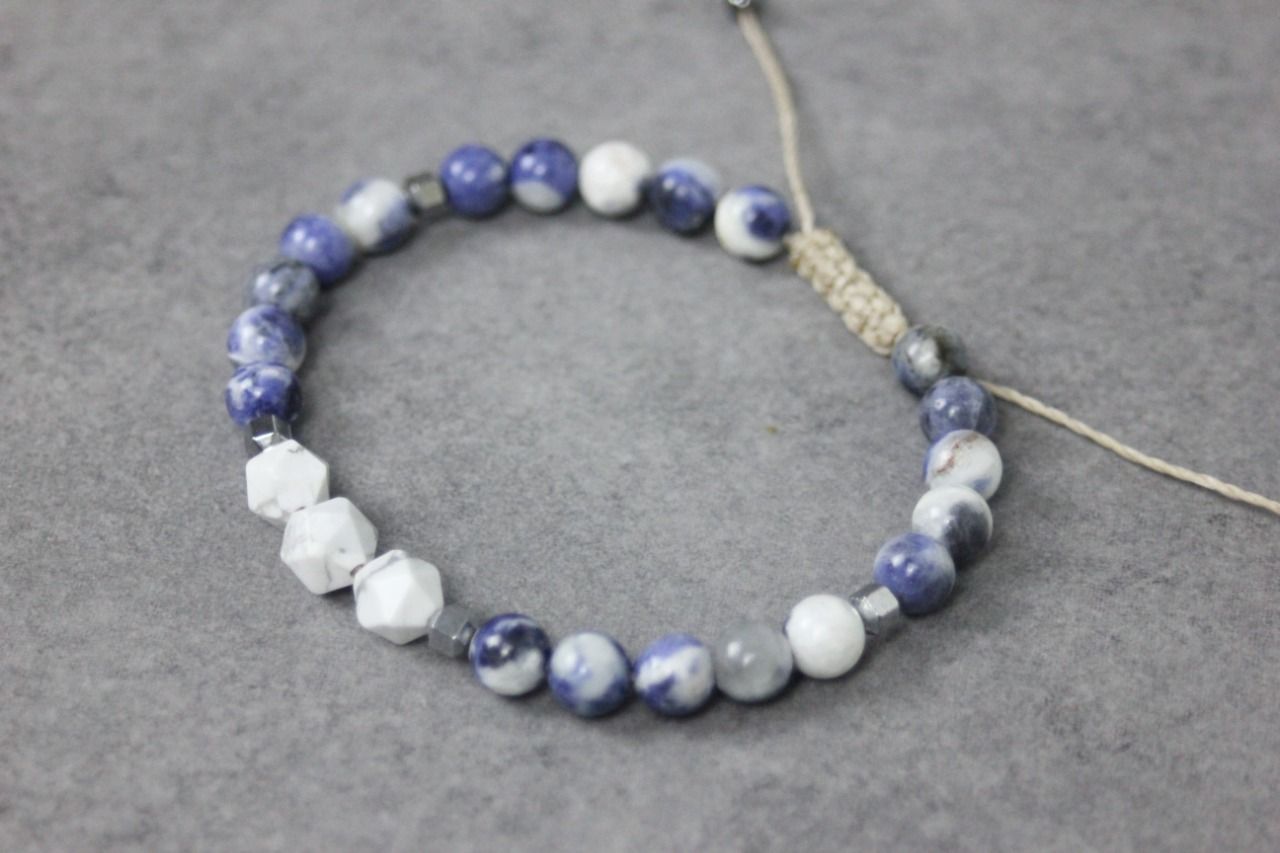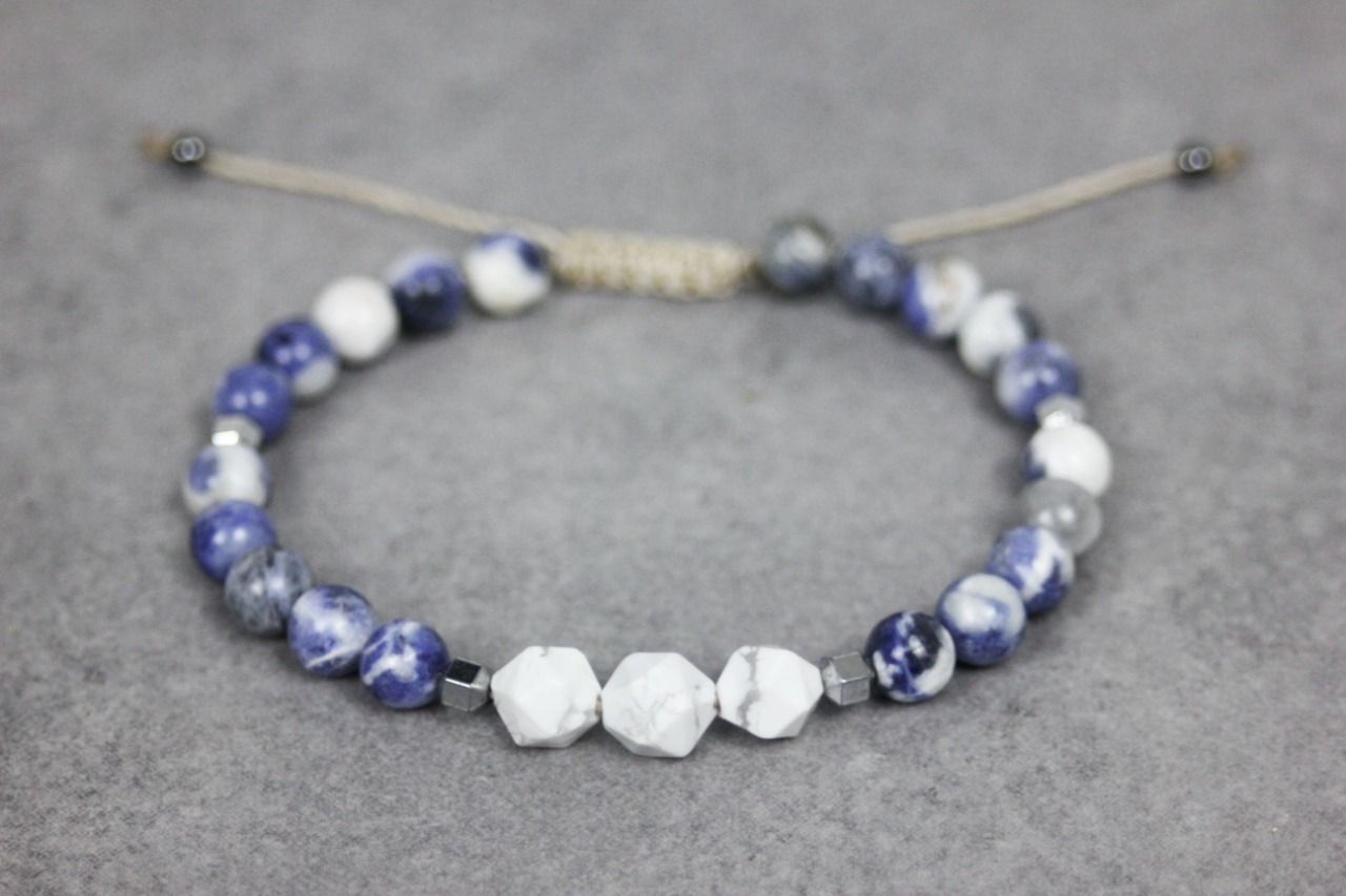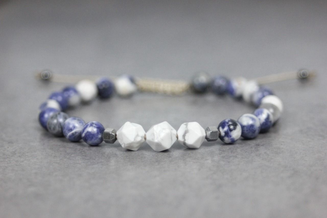 Bracelet en perles sodalite, howlite blanche et hématite