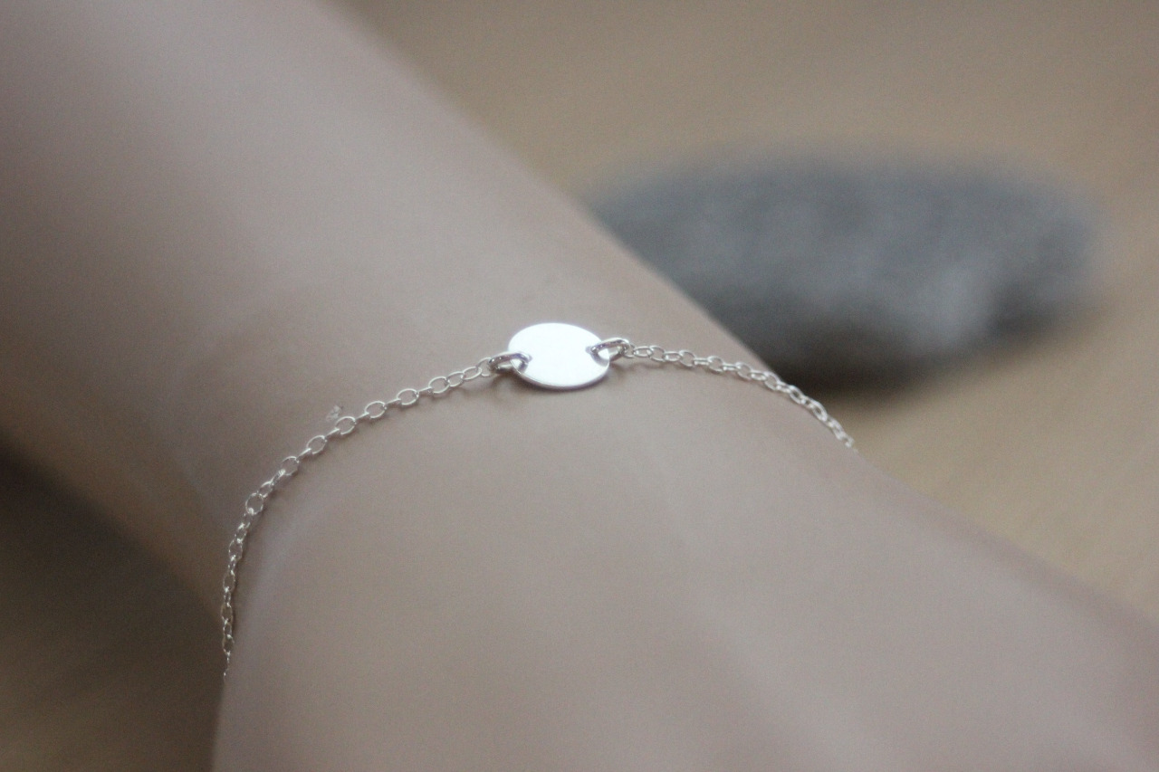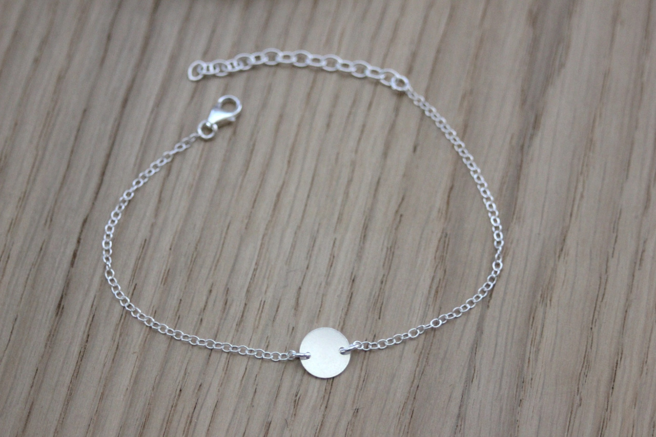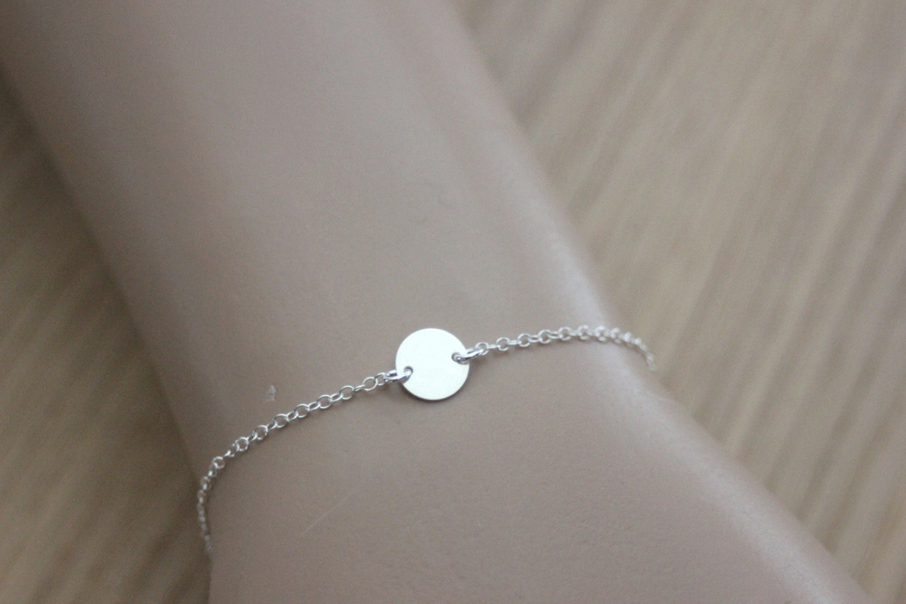 Bracelet minimaliste en argent massif avec petite médaille ronde - Bracelet fin en argent massif - bracelet cercle en argent - bracelet médaille