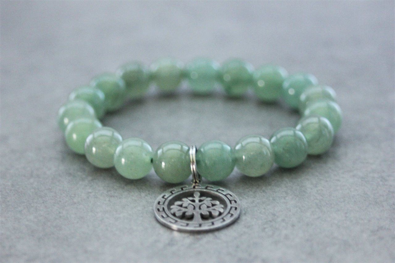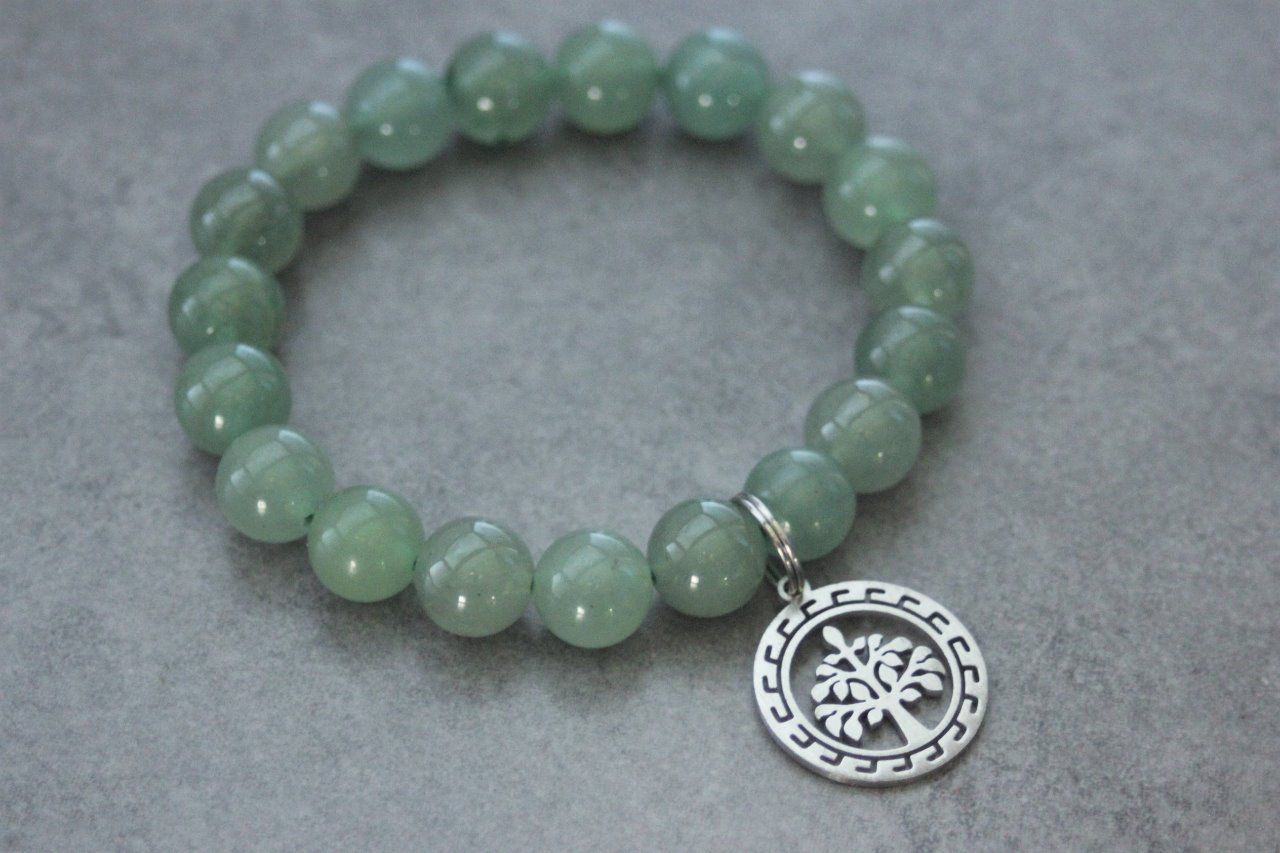 Bracelet perles aventurine verte et breloque arbre de vie en acier inoxydable - bracelet pierres naturelles - bracelet pierres gemmes - bracelet mixte