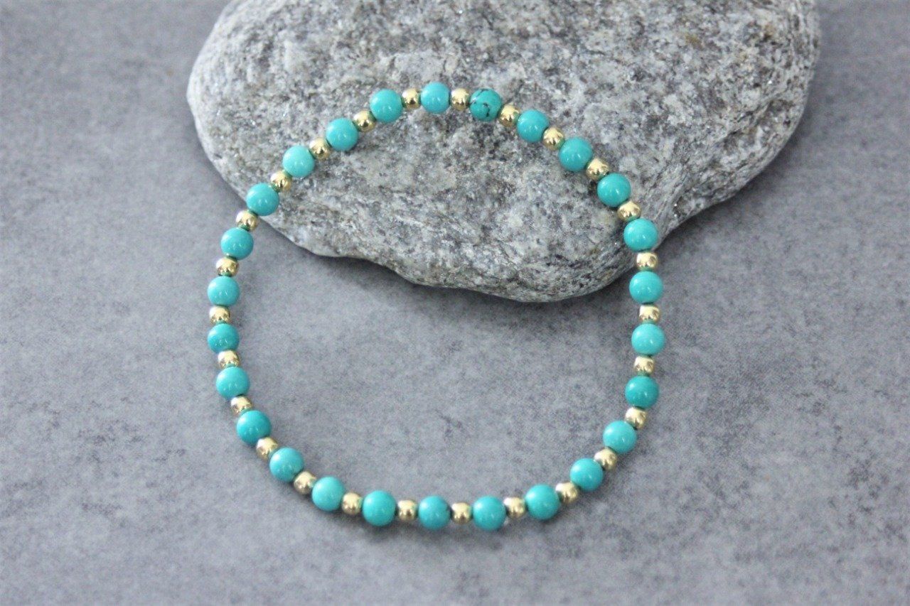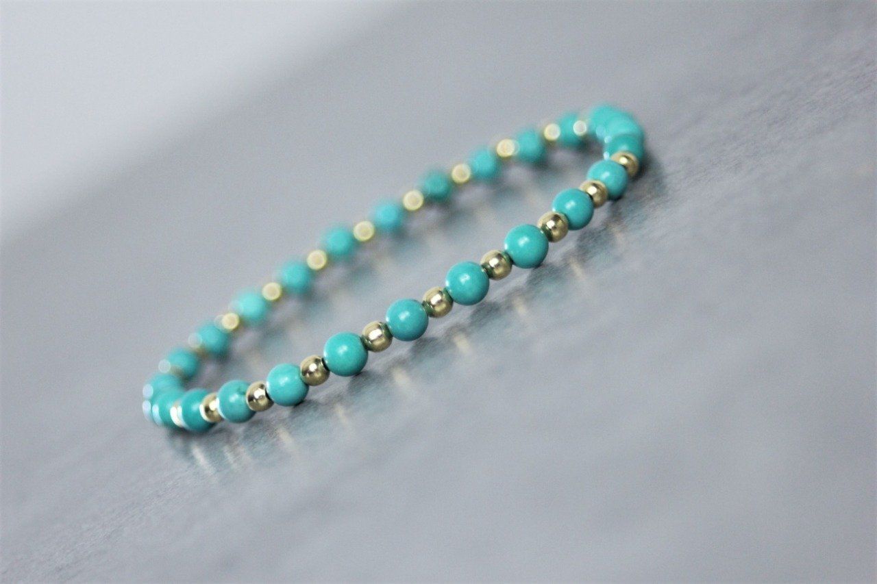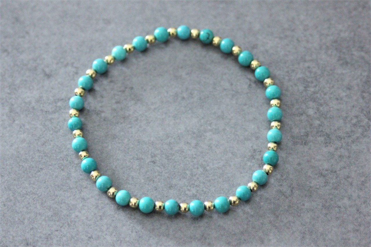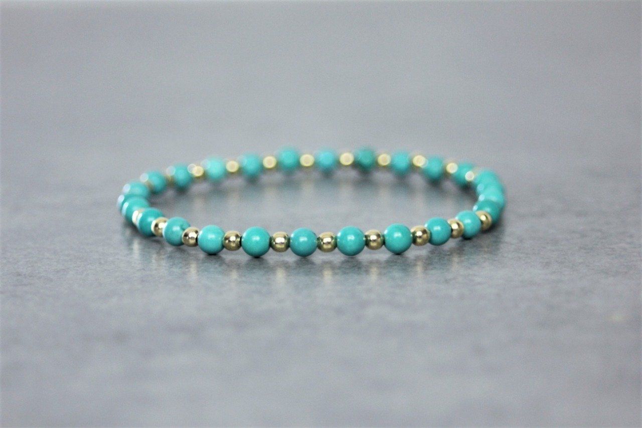 Bracelet femme en pierres naturelles, perles turquoise et perles plaqué or - Bracelet pierres gemmes Ø4mm
