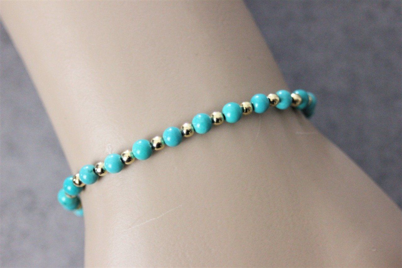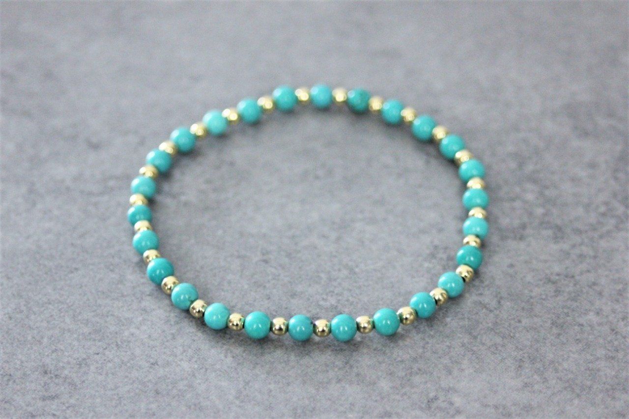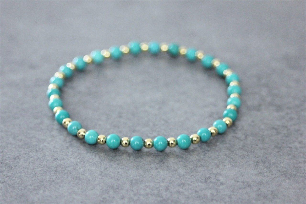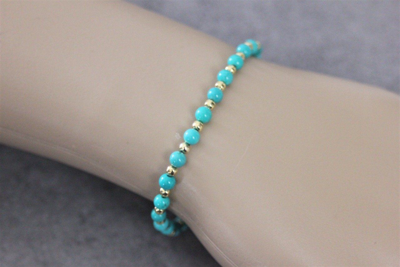 Bracelet femme en pierres naturelles, perles turquoise et perles plaqué or - Bracelet pierres gemmes Ø4mm