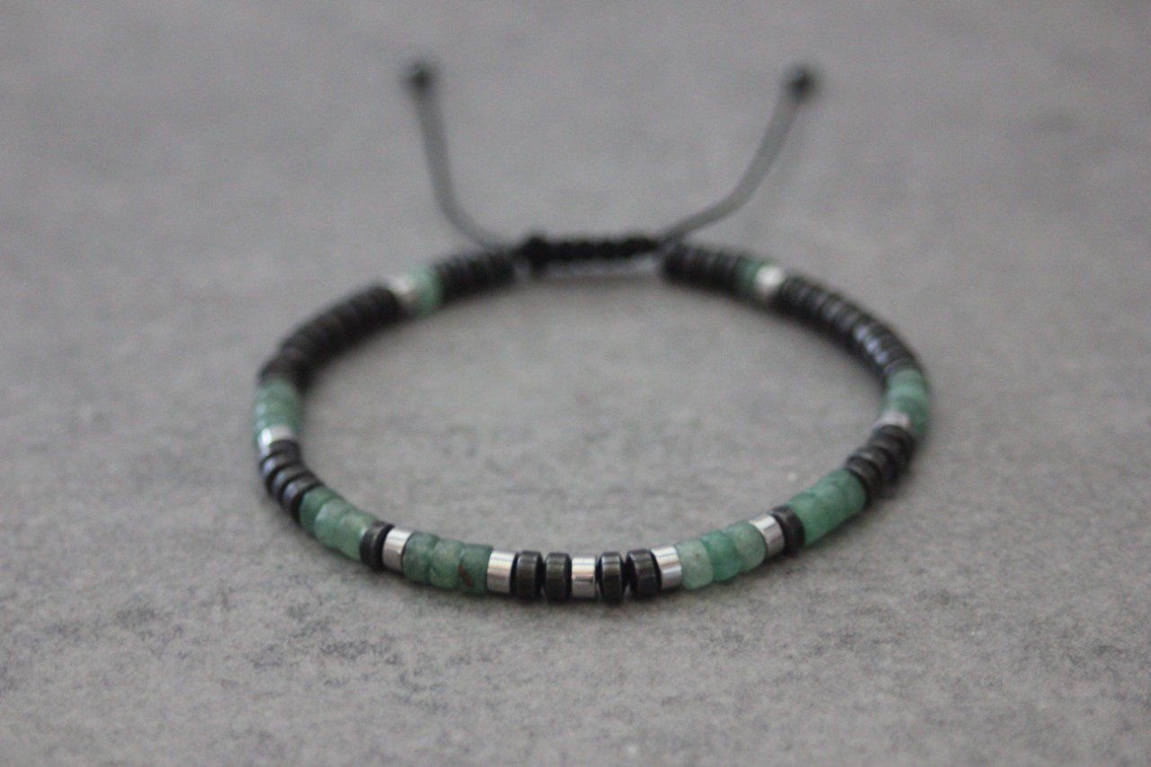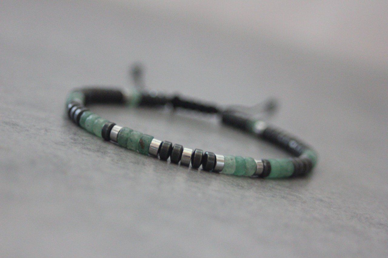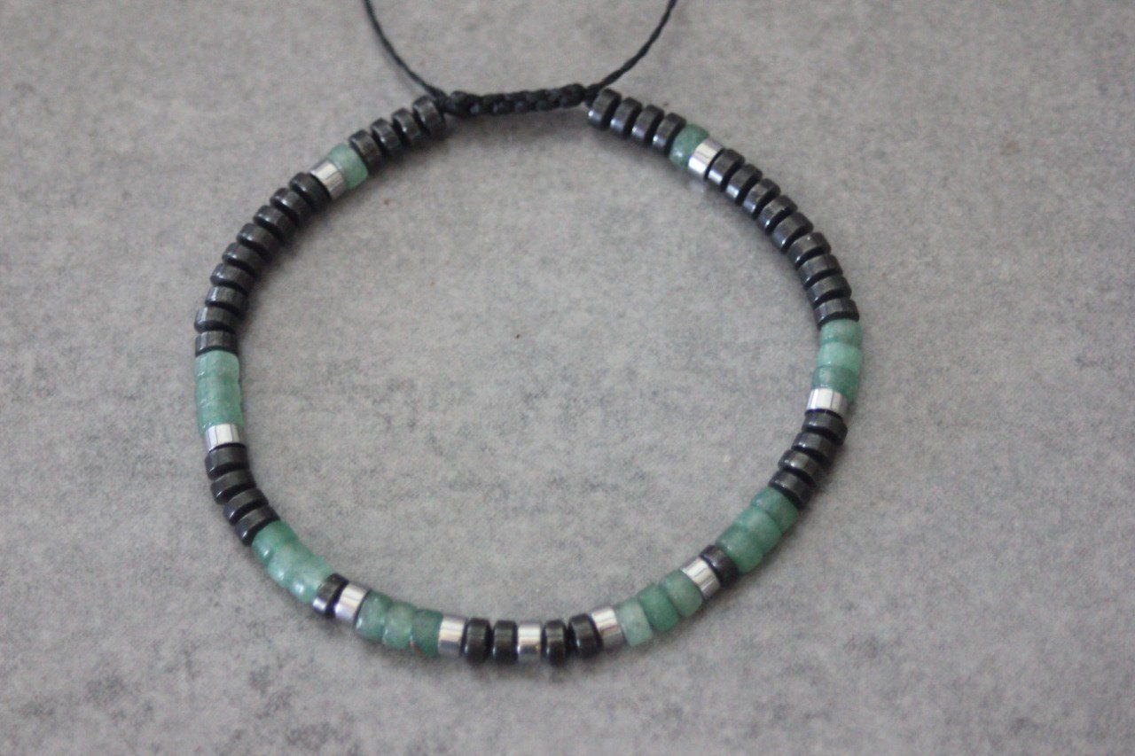 Bracelet homme perles heishi en aventurine émeraude, hématite et hématite argenté Ø4mm - bracelet pierres naturelles - bracelet pierres gemmes - Bracelet surfeur