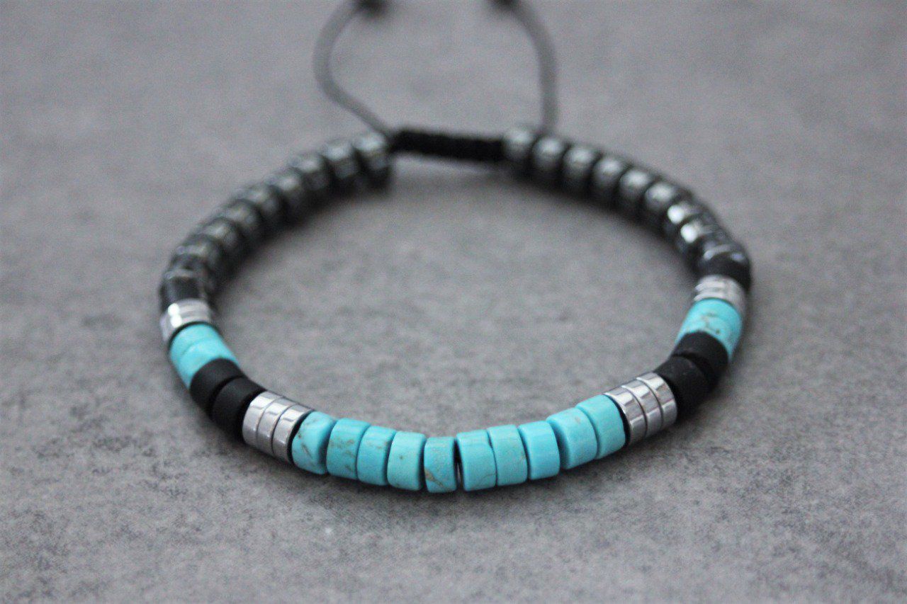 Bracelet homme perles heishi en turquenite, onyx, hématite et hématite argenté Ø6mm - bracelet pierres naturelles - bracelet pierres gemmes - Bracelet surfeur