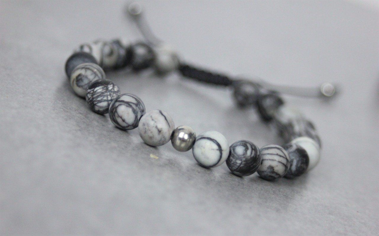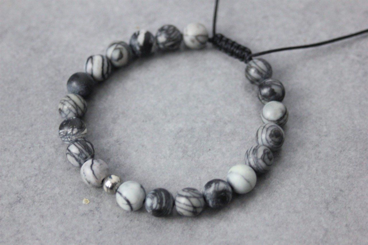 Bracelet perles jaspe picasso et acier inoxydable - bracelet pierres naturelles - bracelet pierres gemmes - Bracelet perles grises