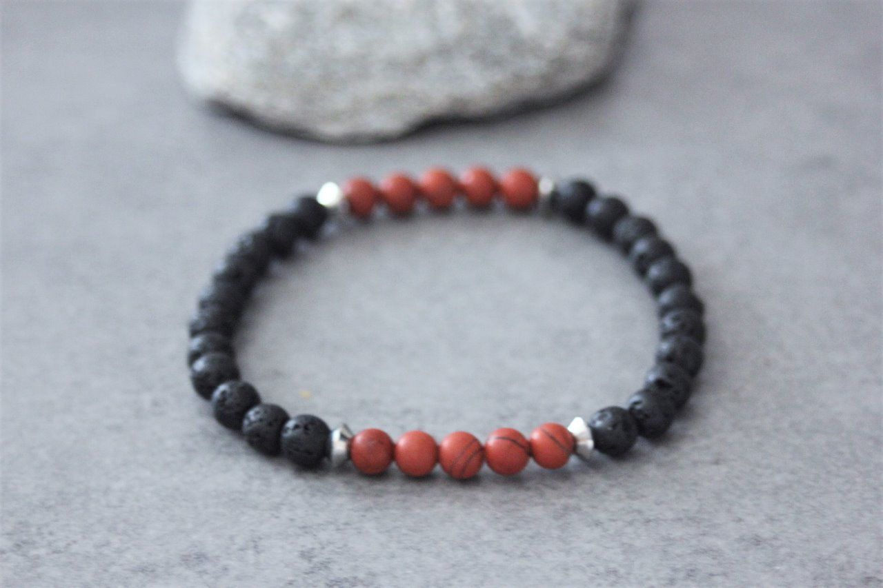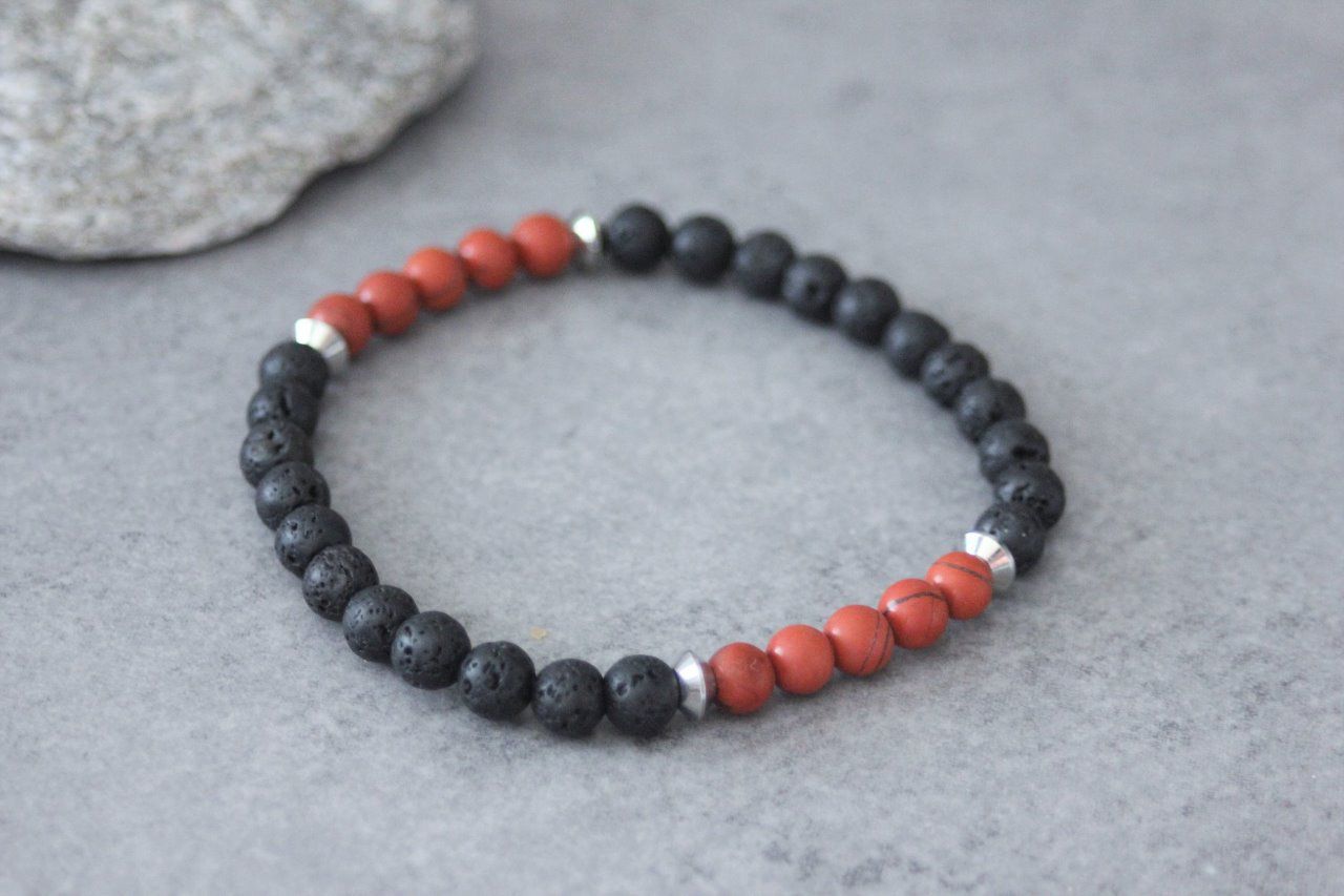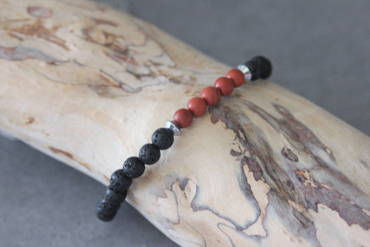 Bracelet perles jaspe rouge mat et pierre de lave