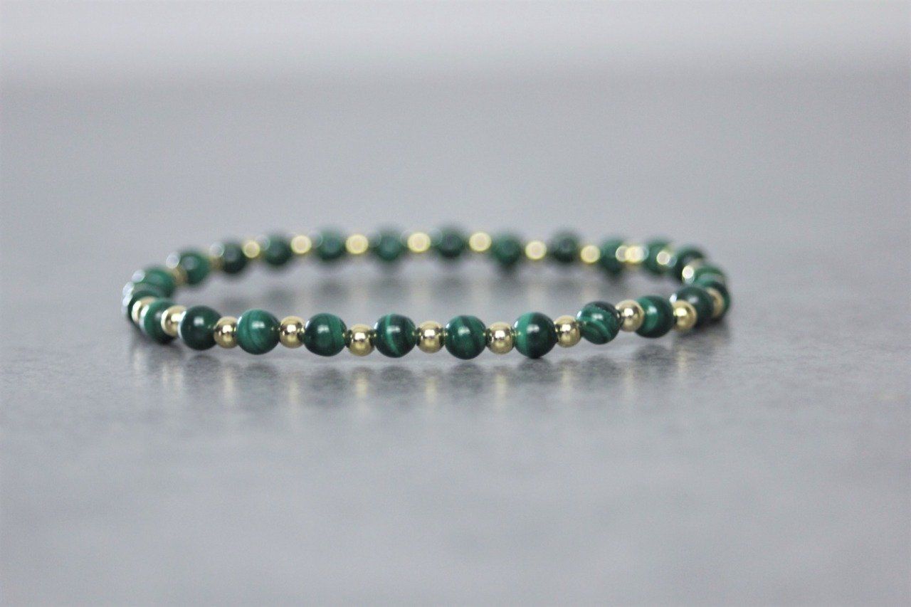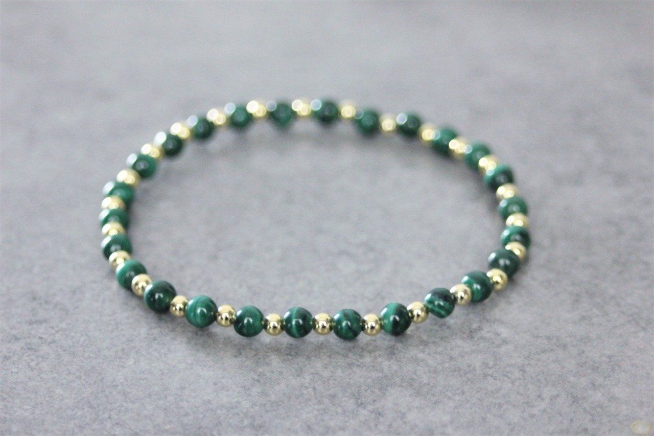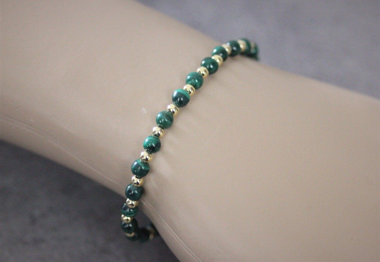 Bracelet femme en pierres naturelles, perles malachite et perles plaqué or - Bracelet pierres gemmes Ø4mm