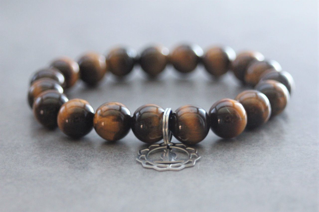 Bracelet perles oeil de tigre et breloque bouddha en acier inoxydable - bracelet pierres naturelles - bracelet pierres gemmes - bracelet mixte