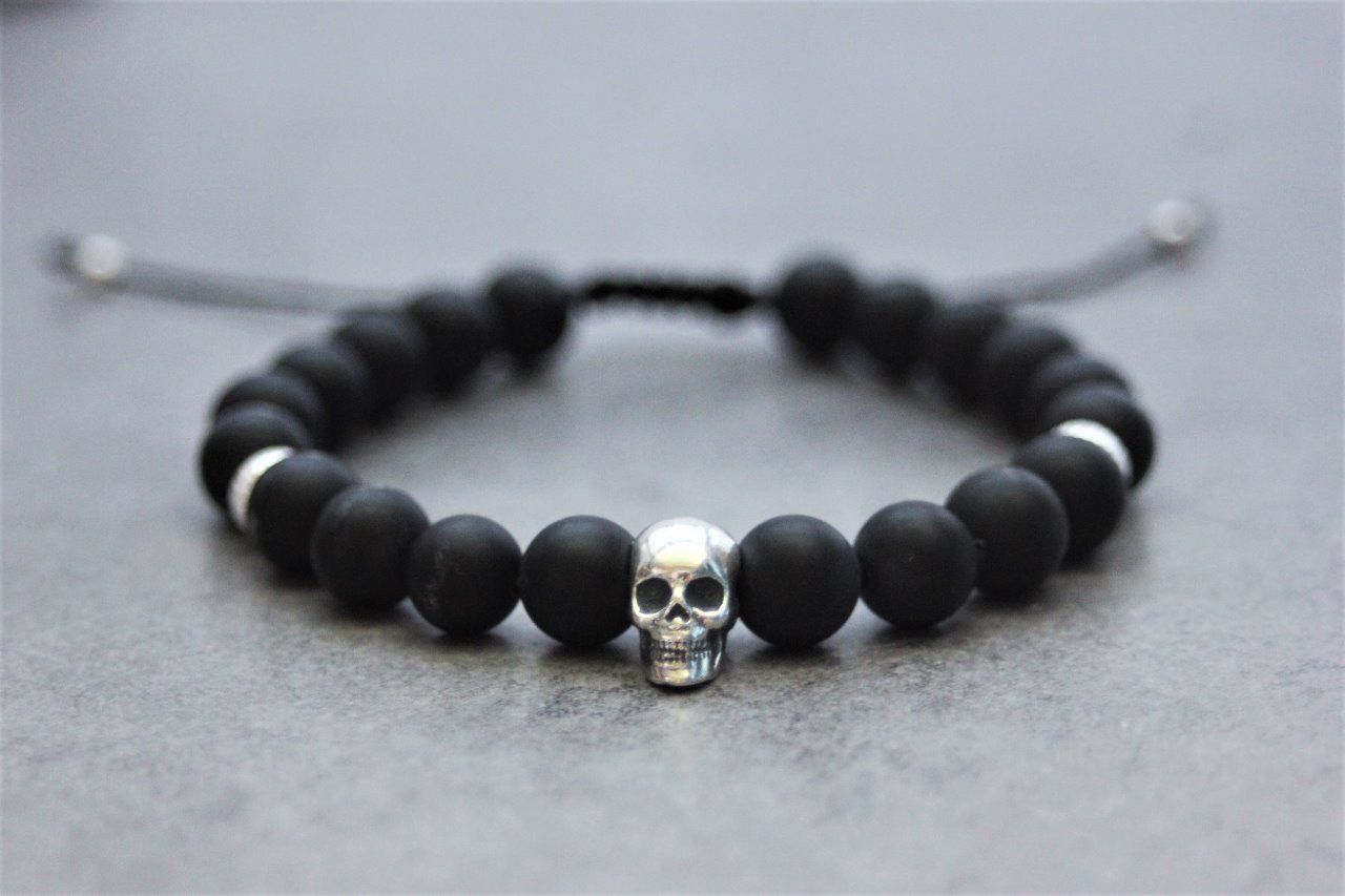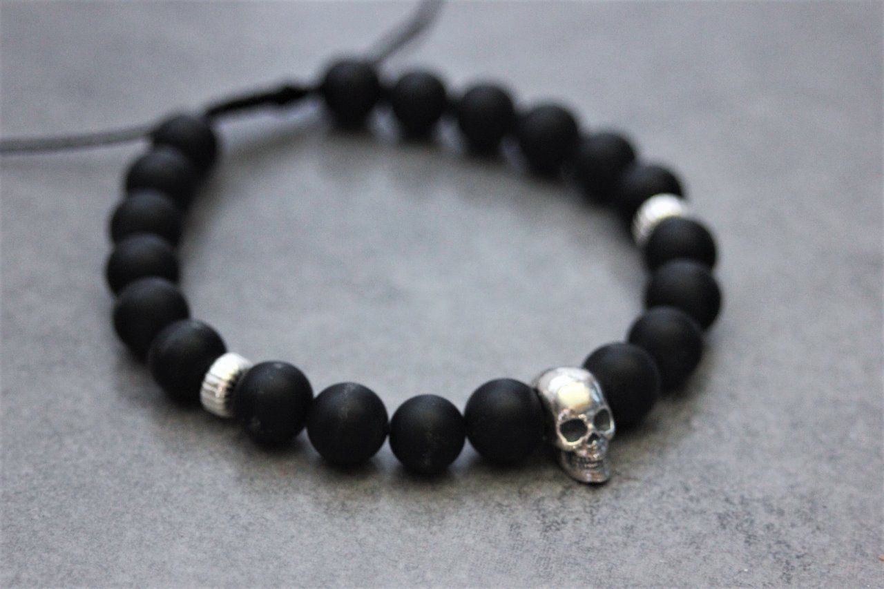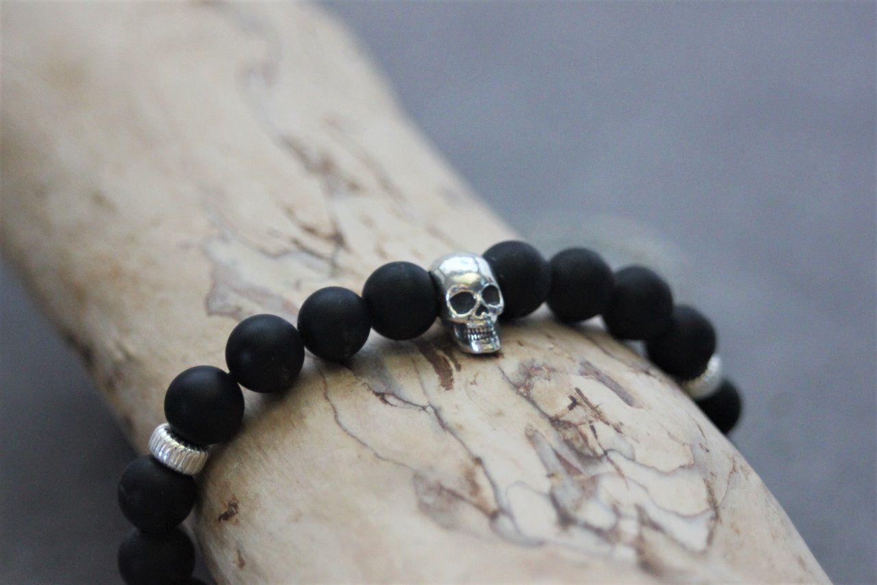 Bracelet perles onyx mat et tête de mort argent 925