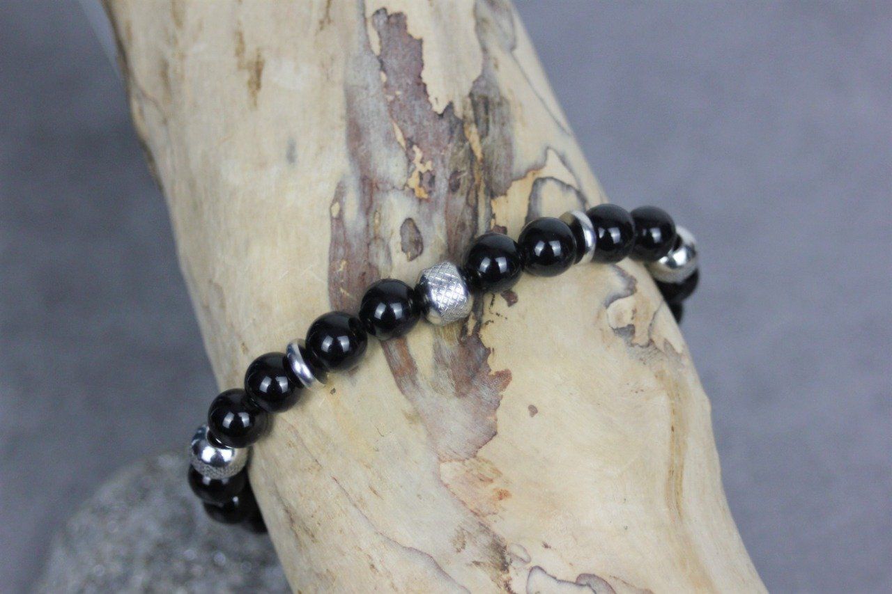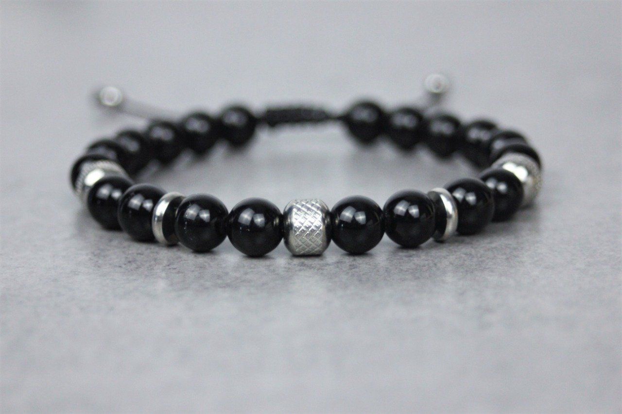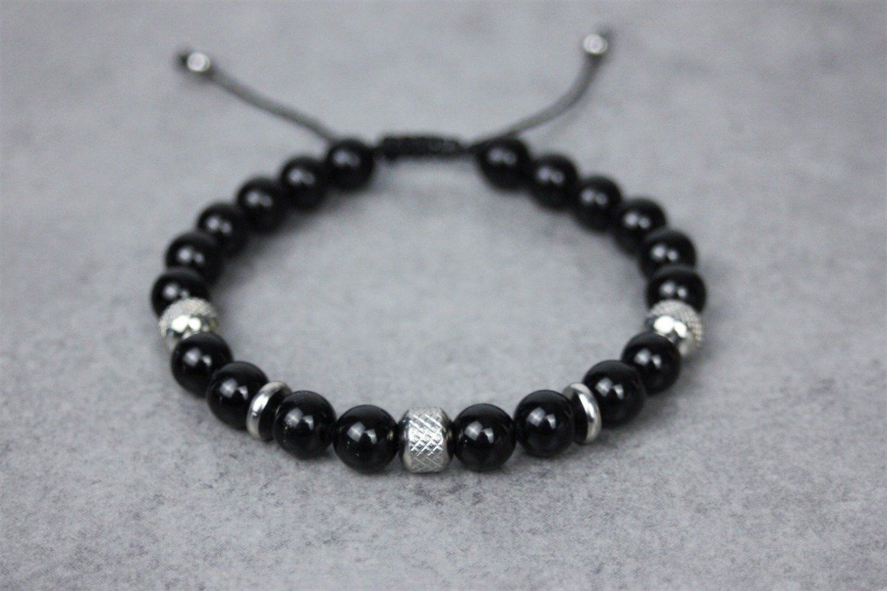 Bracelet perles onyx noir et perle acier inoxydable - bracelet pierres naturelles - bracelet pierres gemmes - Bracelet homme perles