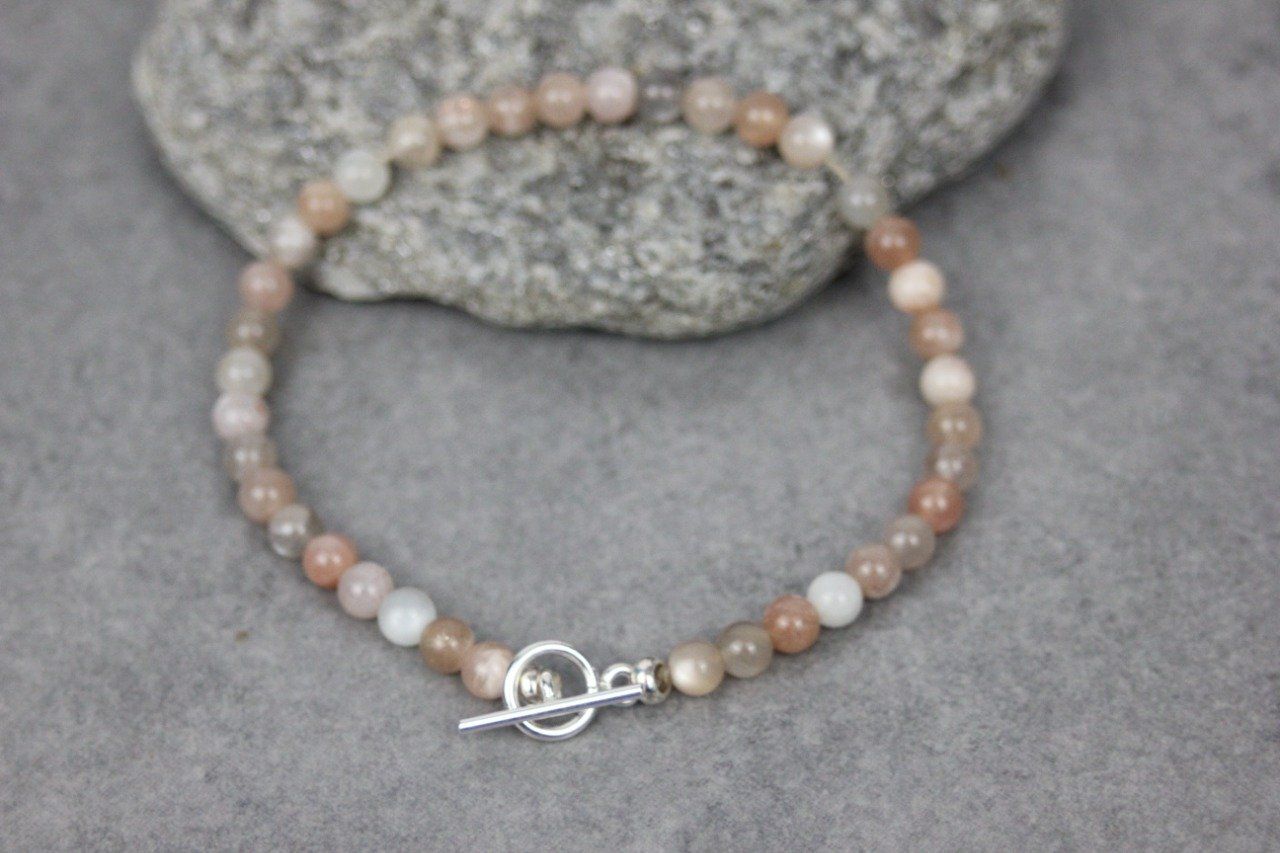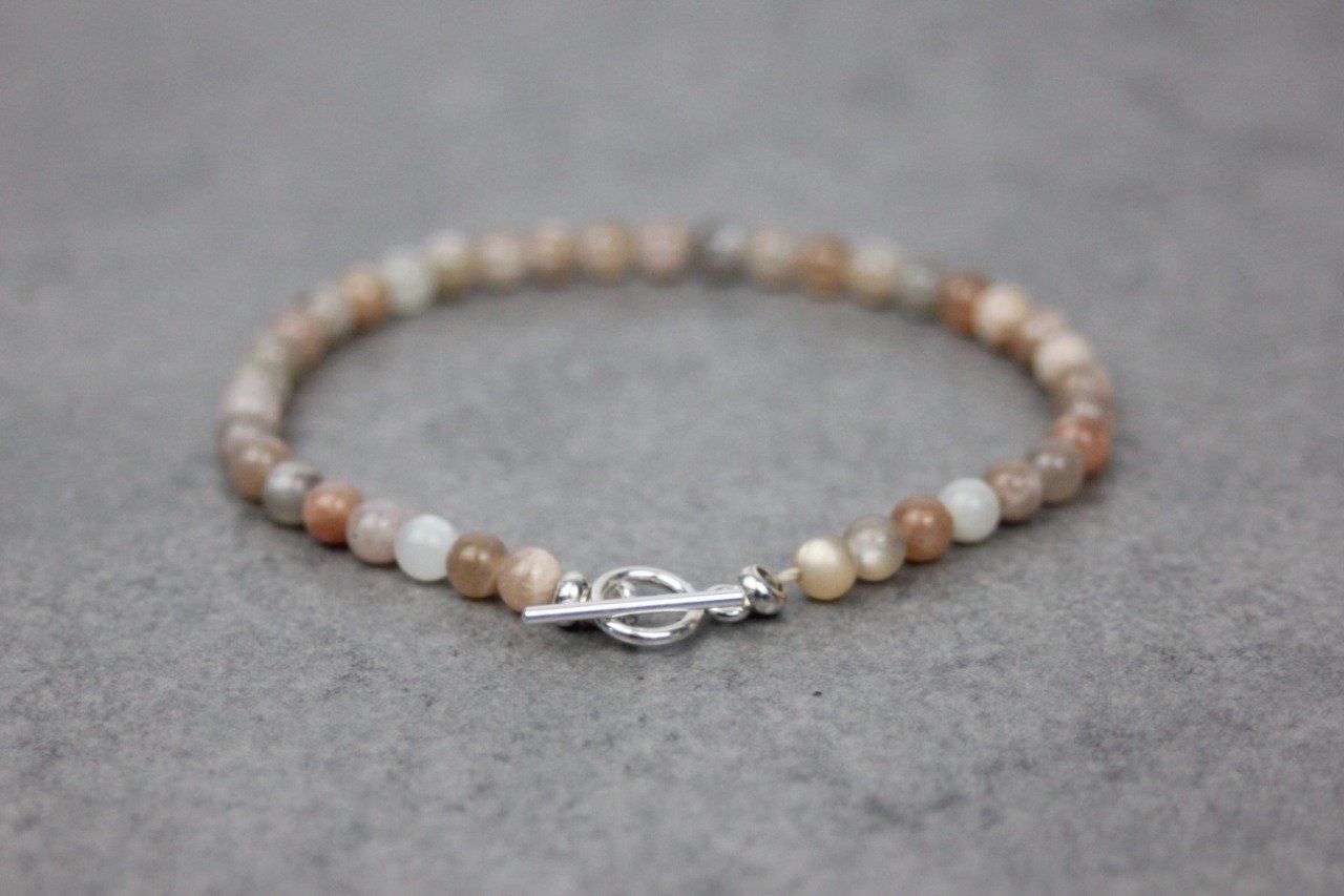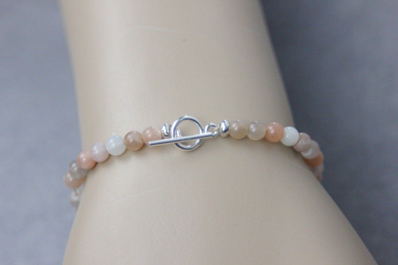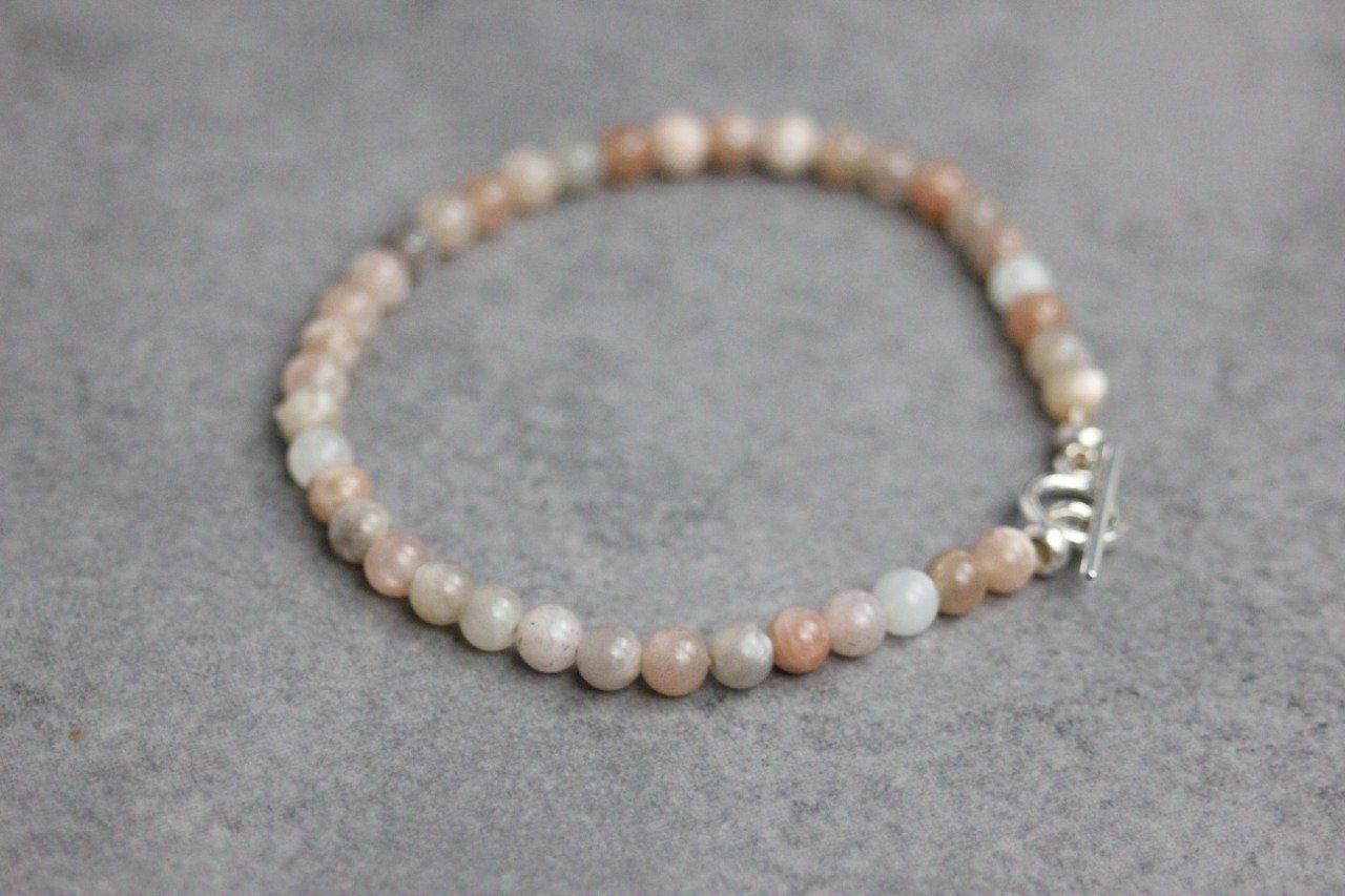 Bracelet en pierres naturelles, pierres de lune multicolores Ø4mm et argent massif 925 - bracelet femme en pierres naturelles - bracelet cordon