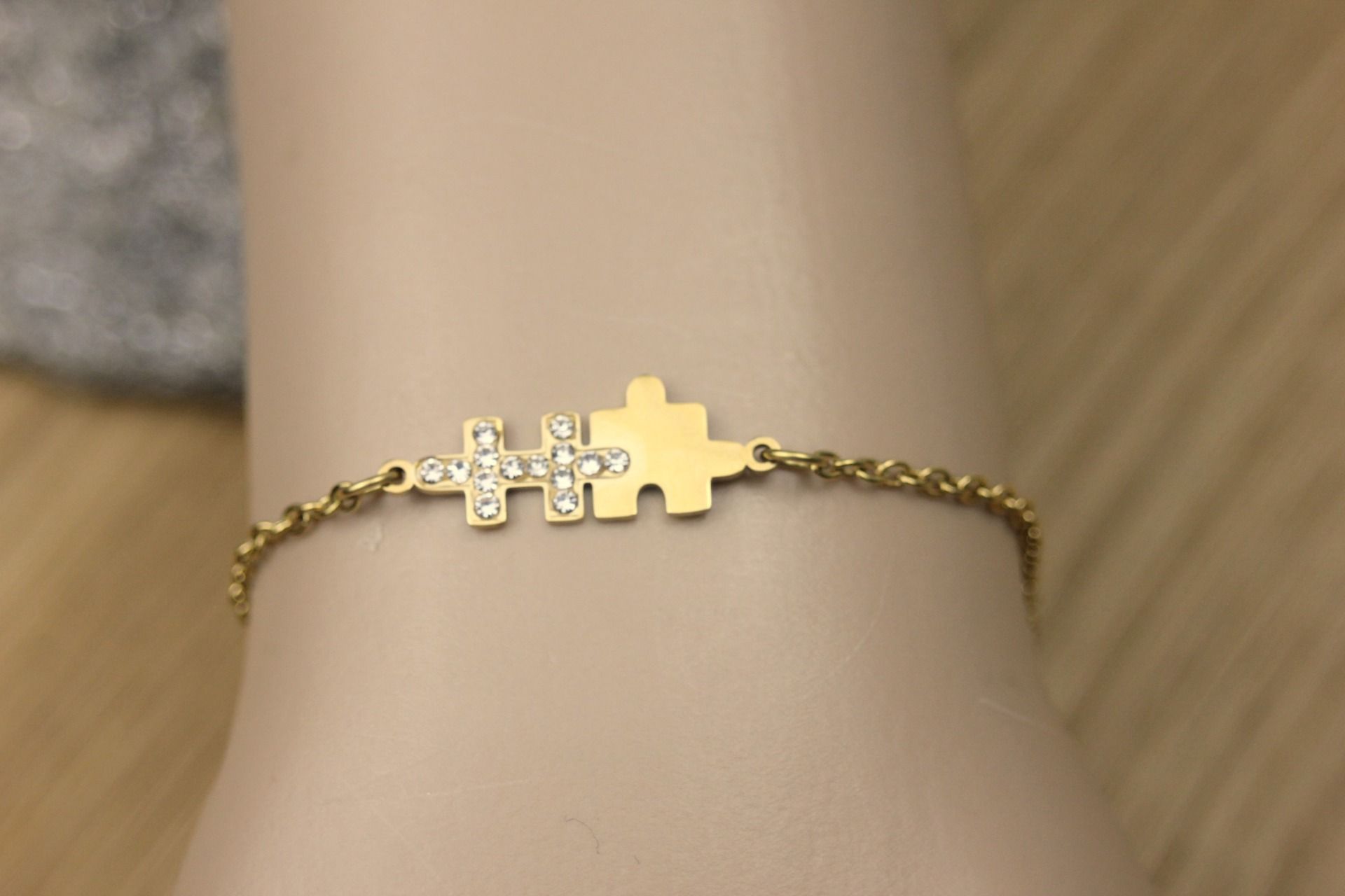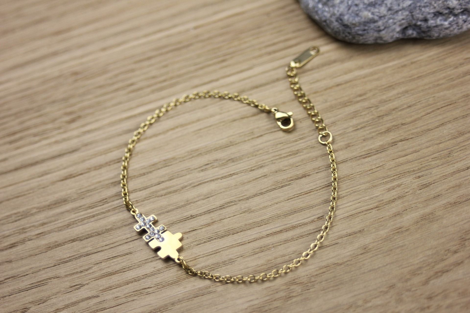 Bracelet puzzle en acier inoxydable doré et zirconiums - bracelet - bracelet acier doré - bracelet minimaliste