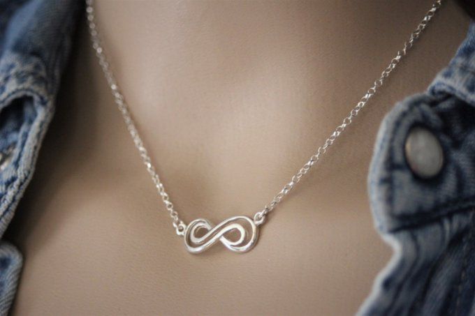 Collier 2 Infini enlacés en argent massif - collier minimaliste - ras de cou argent - Collier Infinity